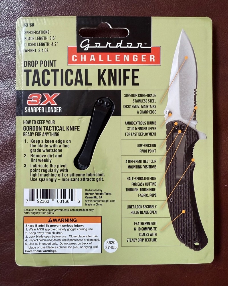 Gordon Challenger Drop Point Tactical Knife 63168 NEW Ambidextrous Steel Blade. Condition is New. Shipped with USPS Ground Advantage.