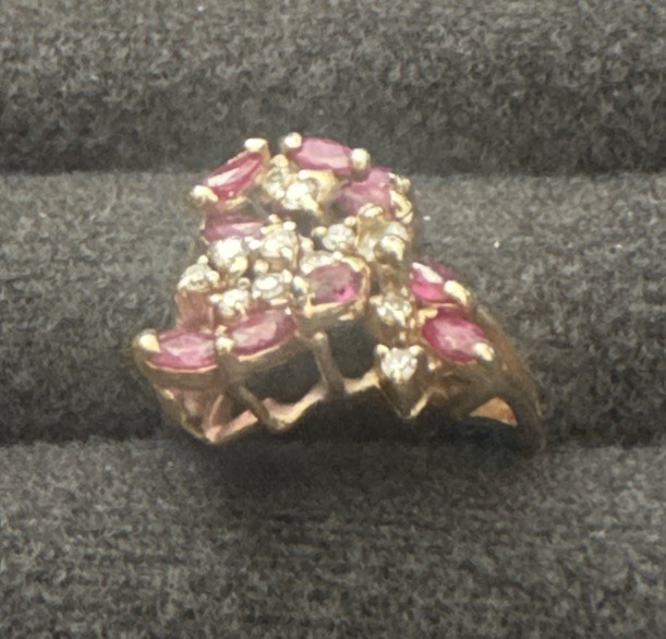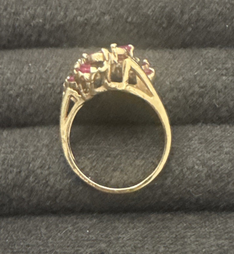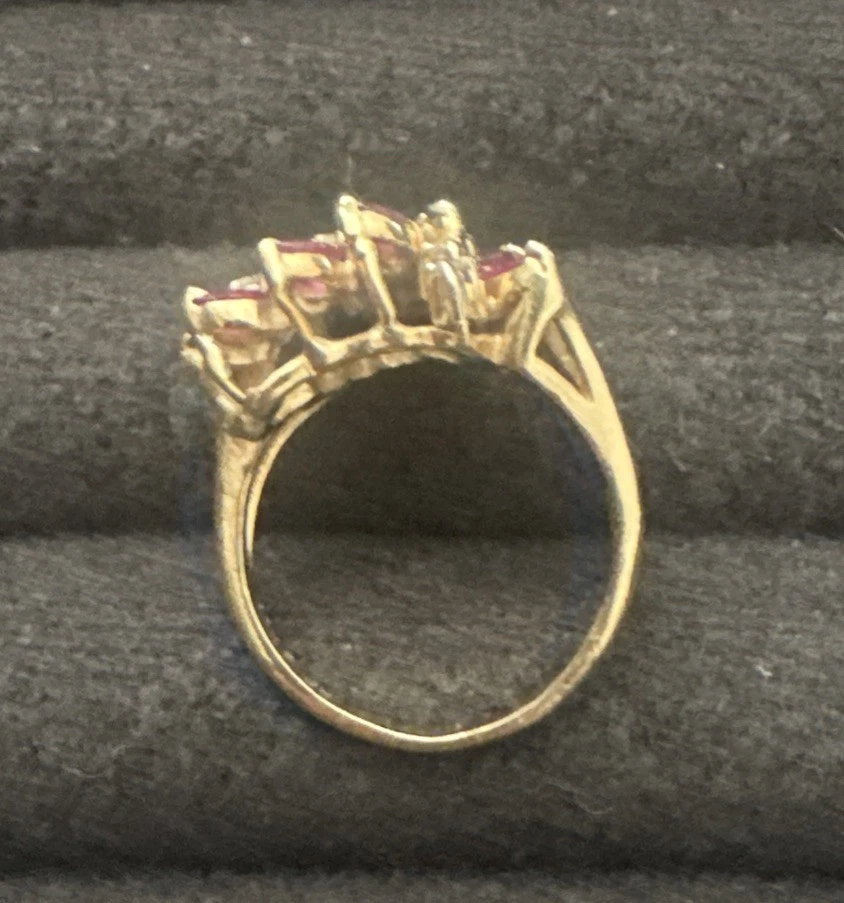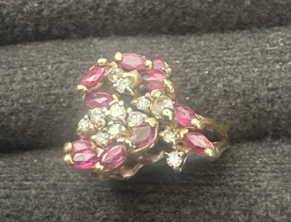 Elevate your jewelry collection with this stunning vintage-inspired cocktail ring, featuring genuine diamonds and natural rubies set in solid 14k yellow gold. With a total carat weight of 3.0ct (2.5ct rubies, 0.5ct diamonds), this eye-catching piece offers timeless elegance and vibrant sparkle. 🔹 Ring Size: 7.5 🔹 Total Carat Weight: 3.0ct 🔹 Gemstones: Natural rubies (2.5ct), genuine diamonds (0.5ct) 🔹 Metal: Solid 14k yellow gold 🔹 Setting Style: Prong 🔹 Made in: United States 🔹 Condition: Excellent, gently worn Whether you’re shopping for an anniversary gift, a statement piece for a special occasion, or a luxurious treat for yourself, this ruby and diamond ring delivers sophistication and charm. 📦 Fast, secure shipping with tracking and insurance included. 💎 Questions welcome—we’re happy to provide additional details.