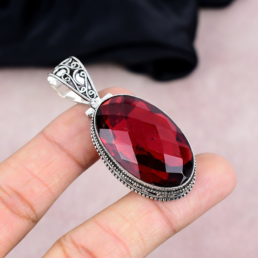 Gorgeous Handmade Garnet Pendant in 925 Sterling Silver Jewelry Gift for Her
