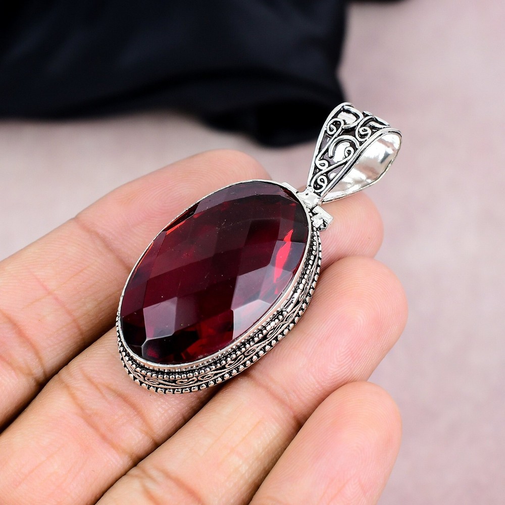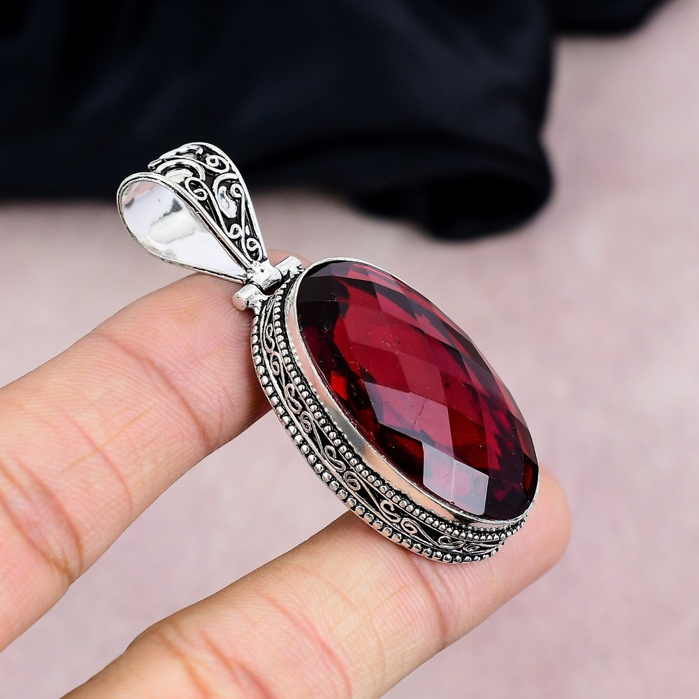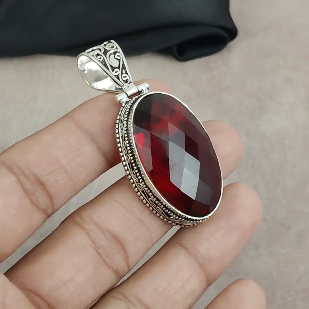 Base Metal:Sterling SilverColor:SilverCut Grade:N/ACertification:N/ASecondary Stone:N/APendant/Locket Type:Same As PicturePendant Shape:Same As PictureCollection:HandmadeNumber of Gemstones:1Colored Diamond Intensity:N/AMetal Purity:925Type:PendantMain Stone Shape:OvalMetal:Sterling SilverChain Type:N/AStyle:PendantClosure:Same As PictureTheme:Beauty, Bohemian, Ethnic, Halloween, Love, NatureMain Stone Color:RedFeatures:HandmadeDiamond Clarity Grade:N/AOccasion:Anniversary, Birthday, Christening, Christmas, Engagement, Father's Day, Graduation, Mother's Day, Valentine's Day, WeddingCountry/Region of Manufacture:IndiaMain Stone:GarnetMain Stone Treatment:Not EnhancedNecklace Length:5.8"Diamond Color Grade:N/AMain Stone Creation:NaturalSetting Style:BezelBrand:HandmadeCountry of Origin:IndiaMaterial:GemstoneTotal Carat Weight:10 carat and aboveNumber of Diamonds:N/A