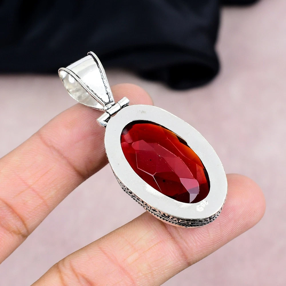 HomeGorgeous Handmade Garnet Pendant in 925 Sterling Silver Jewelry Gift for Her