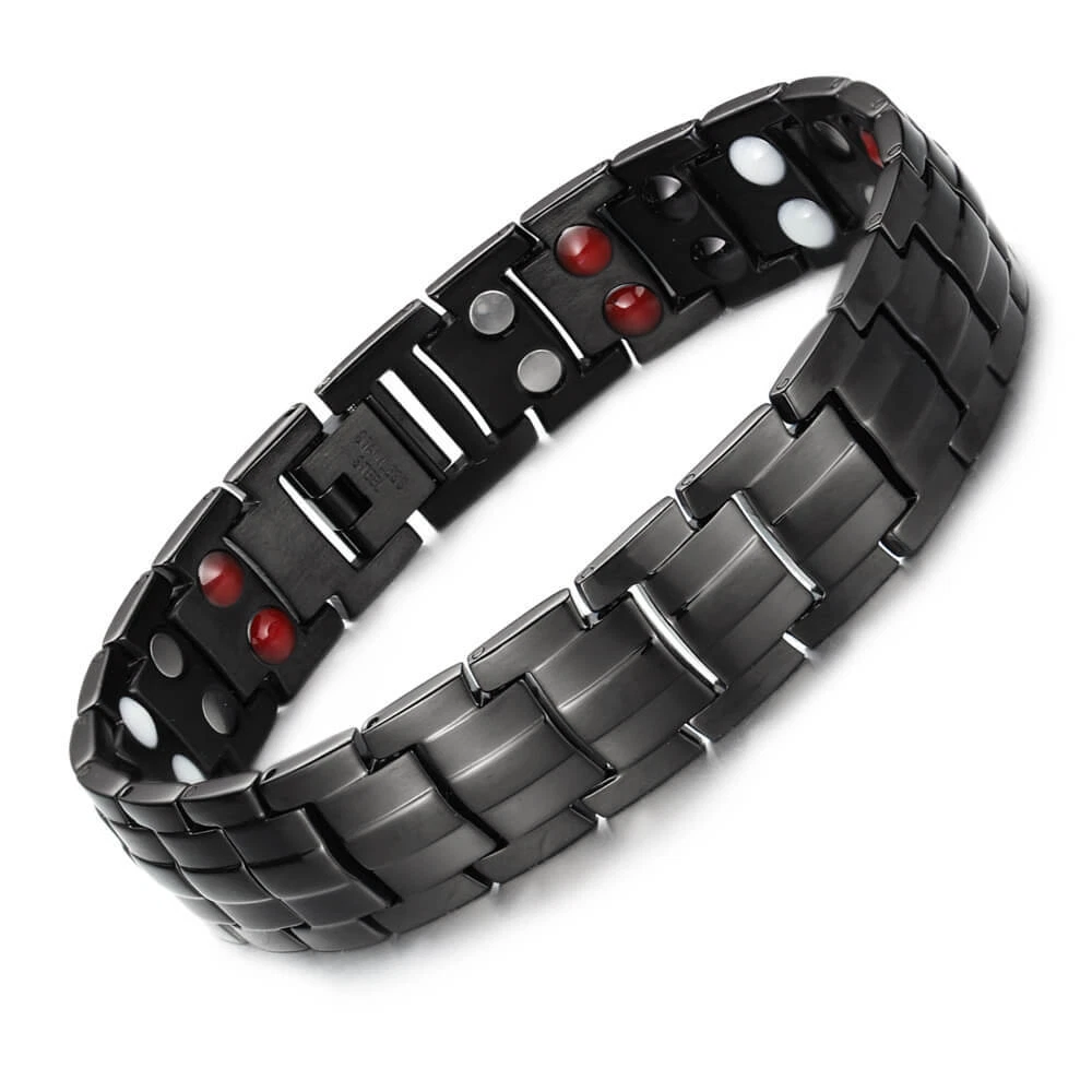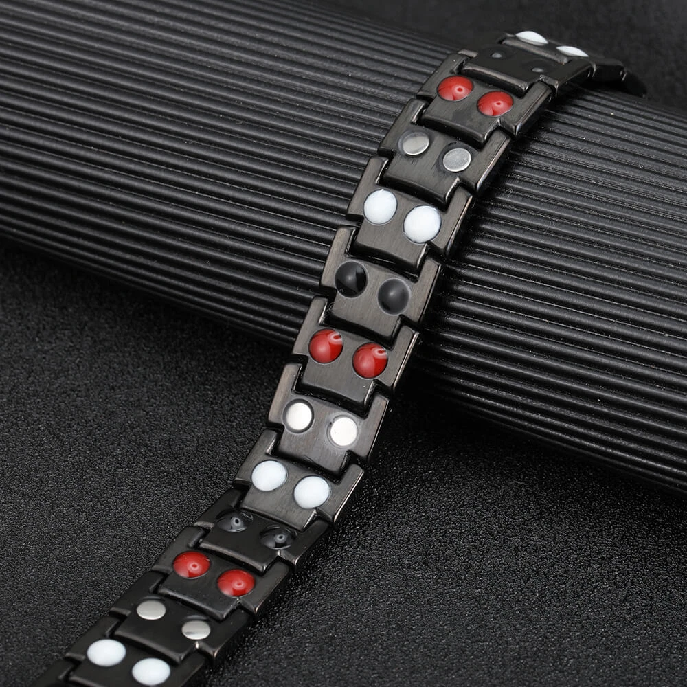 KEY TO GOOD HEALTH IS GOOD CIRCULATION...It's like Acupuncture without the needles! Normally sold at special events for over $100, we are offering the same bracelet at more than 50% off to introduce our brand on ebay. * BEST LOOKING, highest quality, Stylish Modern European Design and Precision Hand-Crafted bracelet. Just wear it, it looks great and its therapeutic– what more could you ask for? Perfect gift for YOURSELF and your loved ones. * Relieve aches and pain, Helps Arthritis Joint pain, Improves Circulation, Relieves Pain, Reduce Inflammation, Improves Balance, Stress relief * Medical -grade stainless steel bracelet with strongest Neodymium 5,000 gauss magnets and 3 minerals. They are 10X stronger than cheaper and weaker hematite magnets. * 44 magnets with Germanium, Negative Ion and Far Infrared Gemstones for maximum Power, Performance and Results (220,000 Gauss total) * KEY BENEFITS- Our bracelet may help increase balance, strength, flexibility, and energy as well as increase blood circulation to help relieve aches and pain. It may help healing process and induces sense of well-being. It's perfect for people with active life style like runners, playing golf or sports. Great gift for yourself and your loved ones, Try it, you will love it or 60 days money back guaranteed.