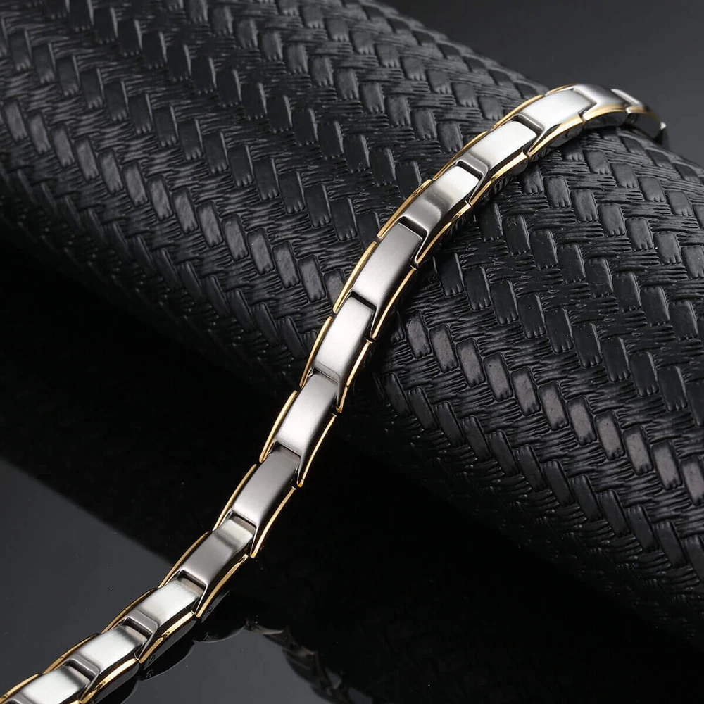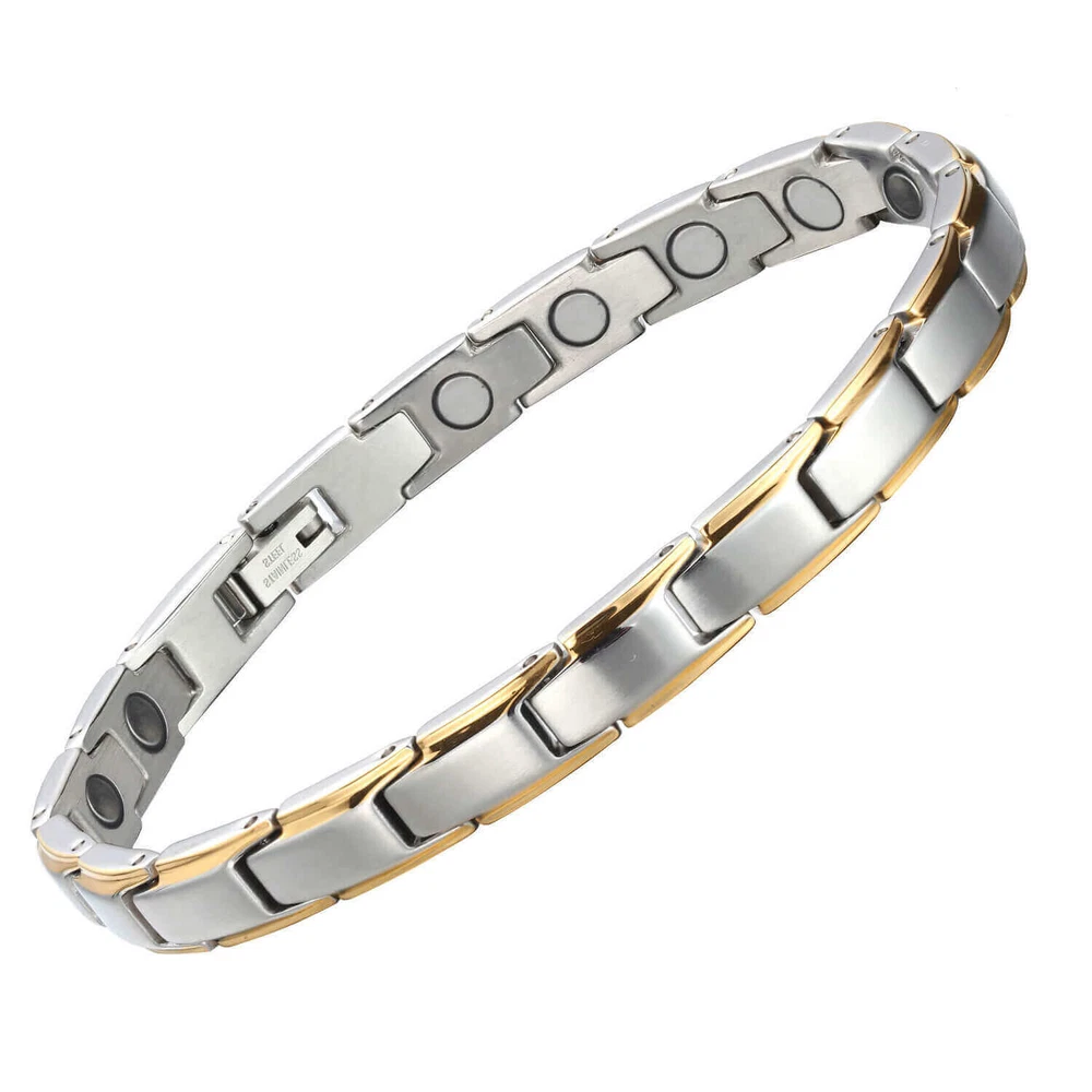 KEY TO GOOD HEALTH IS GOOD CIRCULATION...It's like Acupuncture without the needles Perfect Christmas Gift Normally sold at special events for over $100, we are offering the same bracelet at more than 50% off to introduce our brand on eBay. * BEST LOOKING, highest quality, Stylish Modern American Designed Therapy Bracelets. Just wear it, it looks great and its therapeutic– what more could you ask for? * Perfect gift for YOURSELF and your loved ones. Try it. * Relieves Aches and Pain, Reduces Inflammation, Helps Arthritis Pain, Improves Balance, Stress and Anxiety relief, Improves Circulation (Makes you feel better) * Pure Surgical-Grade (316L) Stainless Steel bracelet with strongest Neodymium 3,500 Gauss magnets. They are 10X stronger than cheaper and weaker hematite magnets. * 20 most powerful 5,000 Gauss Neodymium magnets (100,000 Gauss total) for maximum performance and result . * KEY BENEFITS- Our bracelet may help increase balance, strength, flexibility, and energy as well as increase blood circulation to help relieve aches and pain. It may help healing process and induces sense of well-being. It's perfect for people with active life style like runners, playing golf or sports. Great gift for yourself and your loved ones. Try it, you will love it or 60 days money back.