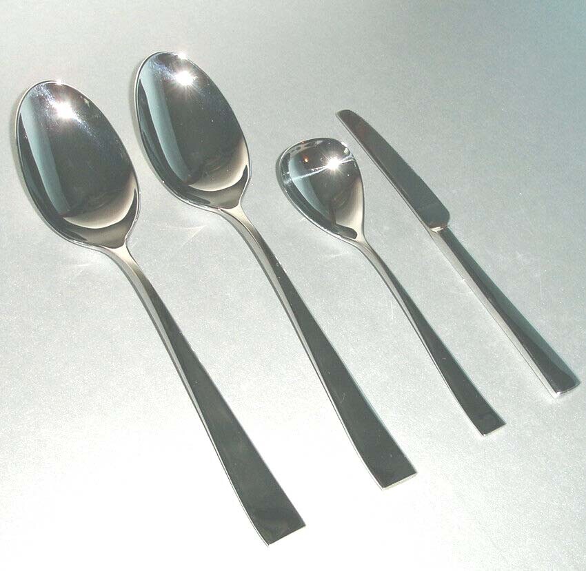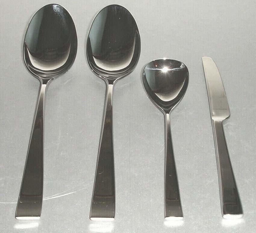 Gorham Argento 4-Piece Serving Set 18/10 Stainless Flatware Brand new in original box • High quality, polished finish 18/10 stainless steel flatware set • F eatures sleek, concave handles with a contemporary, yet timeless look and feel, sturdy enough for everyday use, and elegantly styled for special occasions • Gorham is part of the renowned Lenox company • Dishwasher safe and stain resistant • Set includes: One sugar spoon One butter knife Two serving tablespoons --------- Please closely examine the listing and submit any questions prior to purchase. Pictures may not reflect true colors due to various lighting conditions. Ships from a smoke-free, pet-fre