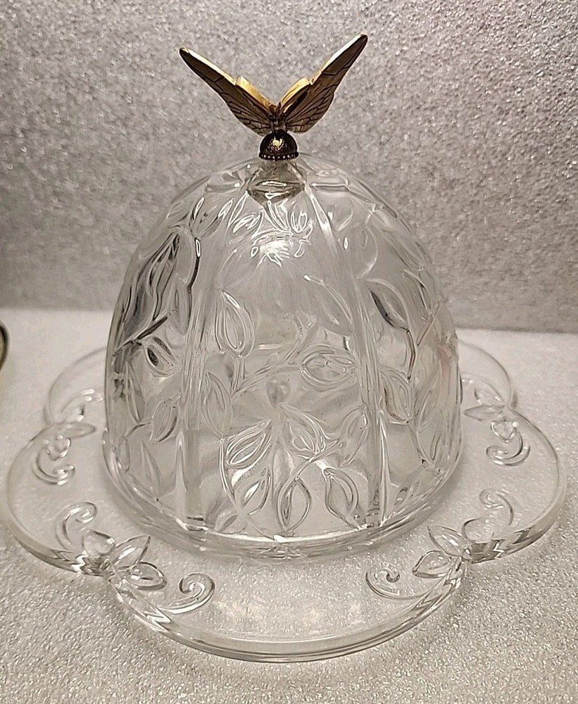 Gorham Crystal Garden Serenade Butterfly Dome Butter Cheese Dish