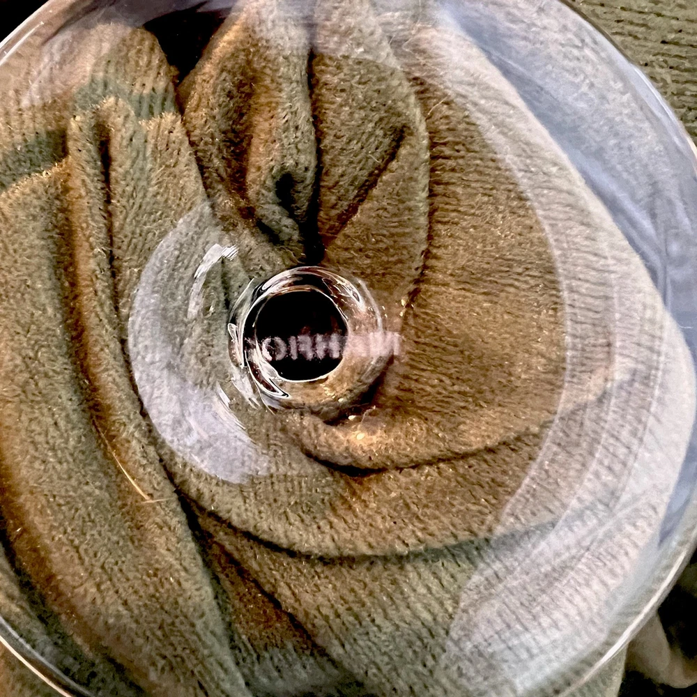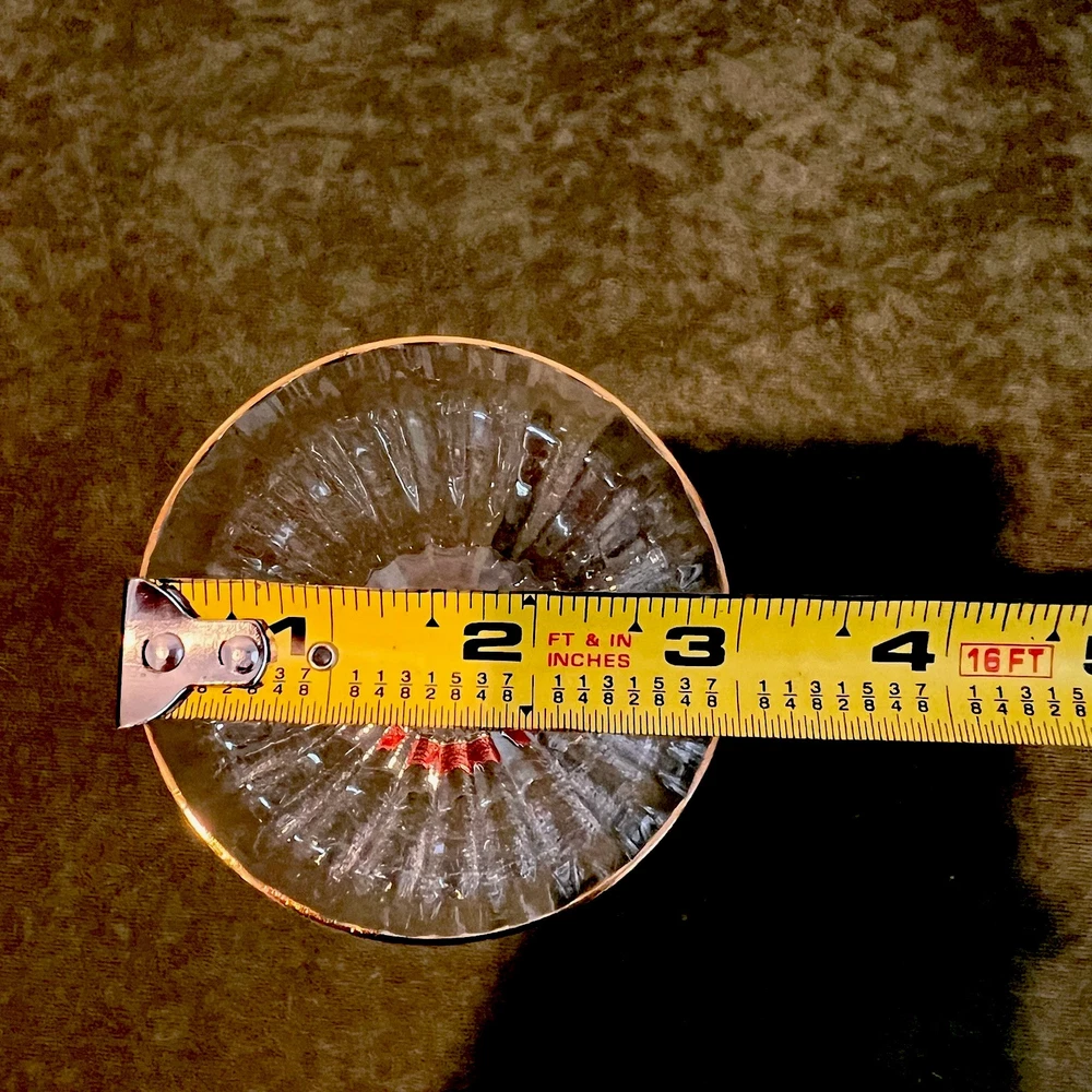 This vintage set of four Gorham Laurin crystal wine glasses is elegantly designed with a gold rim and ribbed backstamp. Handmade in Yugoslavia in 1982, each round wine glass stands at 7 1/4 inches tall with a 3-inch diameter. The contemporary style and glossy finish make them suitable for all occasions, while the "Laurin" pattern adds a touch of sophistication. Care instructions recommend hand washing only, and the glasses are crafted with high-quality crystal. Perfect for wine lovers, this set showcases a unique blend of elegance and craftsmanship from the 1980s.