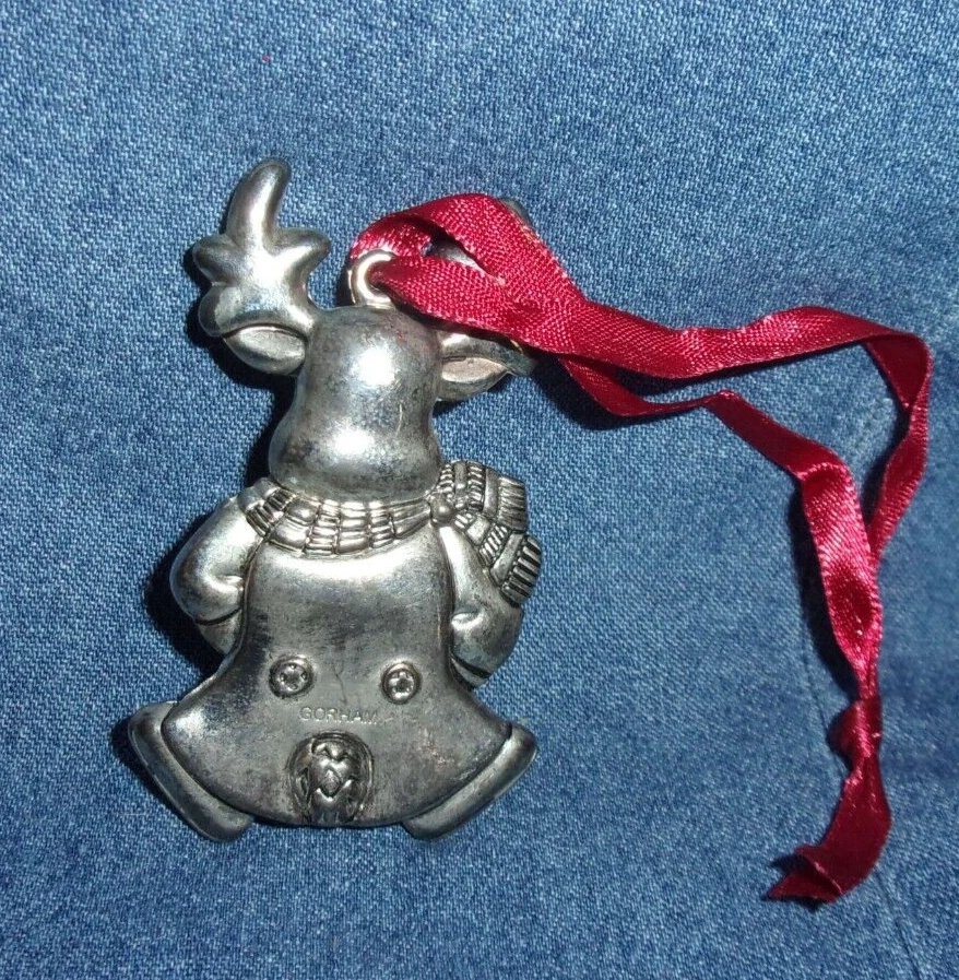 Gorham Reindeer with Drum Silverplate Christmas Holiday Ornament. It measures approximately 2.75" tall. It is tarnished. This item is from a smoke free home. Please contact me if you have any questions. Thank you.