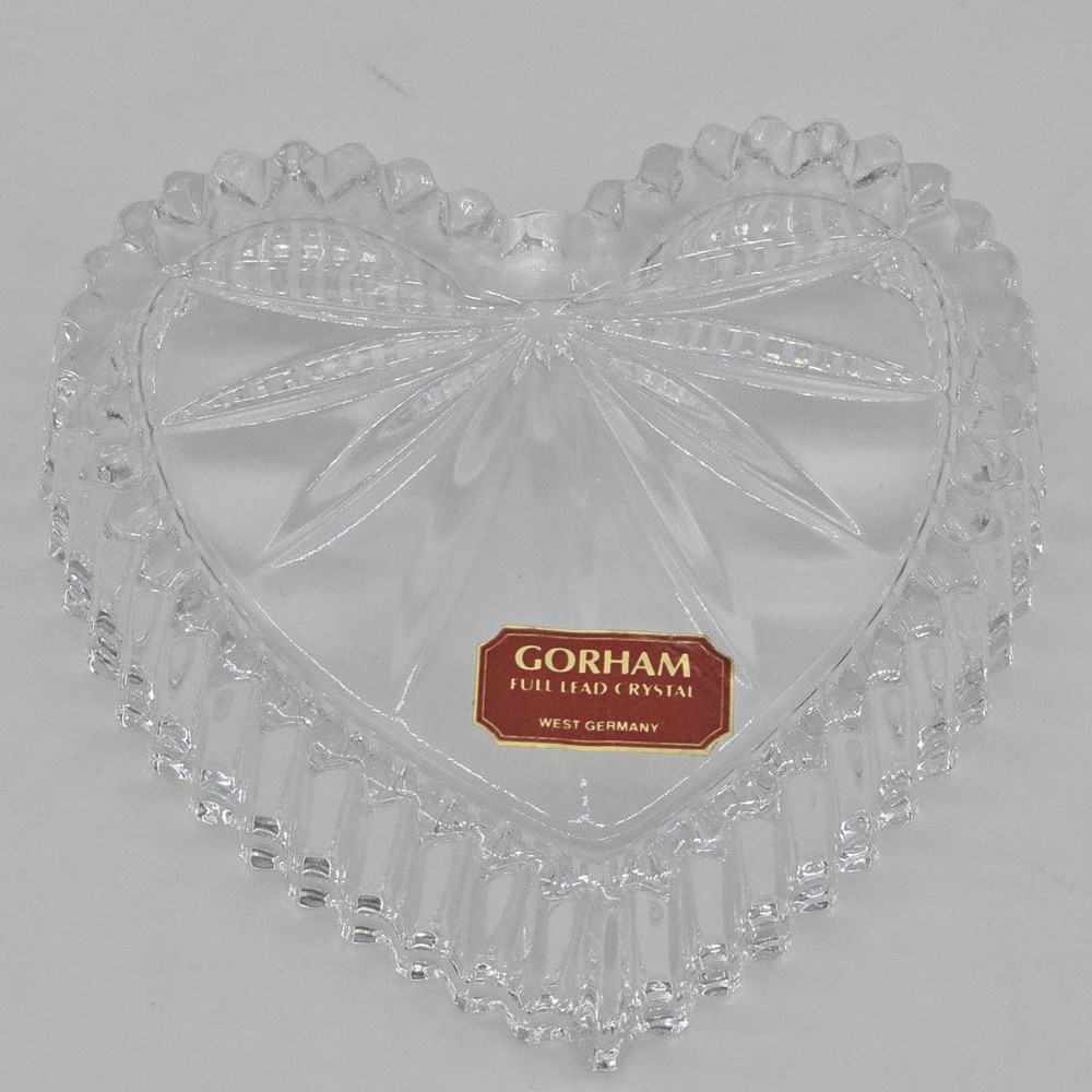 Brand: Gorham Country/Region of Manufacture: Germany Type: Trinket Box Pattern: Hearts Color: Clear Features: Boxed, Crystals Material: Crystal Subject: Heart Shape: Heart