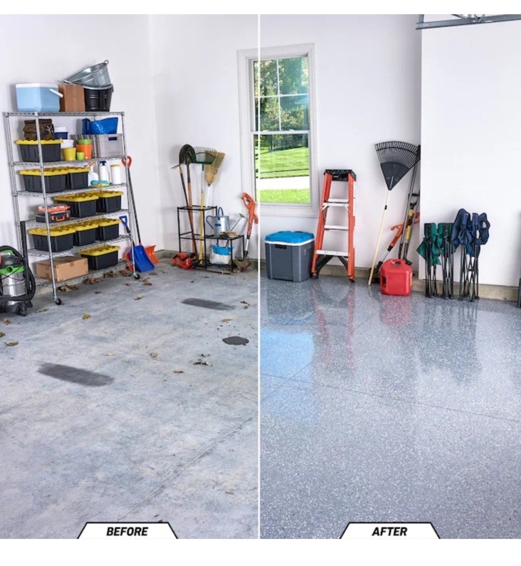 Gorilla Epoxy Garage Floor Coating (12 pc) Kit, 2.5-Car, Concrete Flooring, 100% Solids, Superior Adhesion, Incredibly Durable High Gloss Gray Finish, 550 sq. ft. Coverage This item is brand new and sealed. Originally $430 plus taxes.