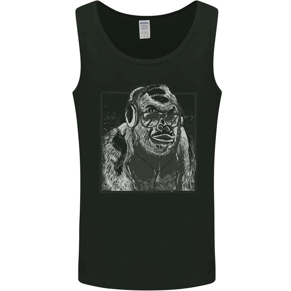 Gorilla with Headphones DJ Dance Music Mens Vest Tank Top