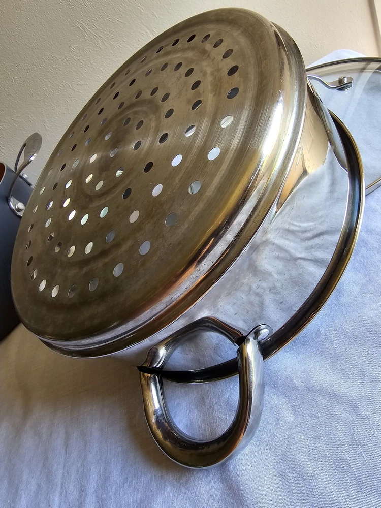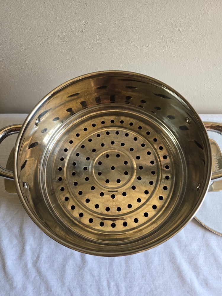 Item Diameter:9.5 inNumber of Items in Set:Three-PieceHeat Resistance:unknownType:StockpotBrand:Gotham SteelFeatures:Easy Clean, Non-StickStove Type Compatibility:Electric, GasType of Oven:Electric, GasShape:RoundModel:unknownCountry/Region of Manufacture:ChinaSurface Coating:CeramicMaterial:Aluminum, TitaniumColor:GraySet Includes:Lid, Steamer, Stockpot