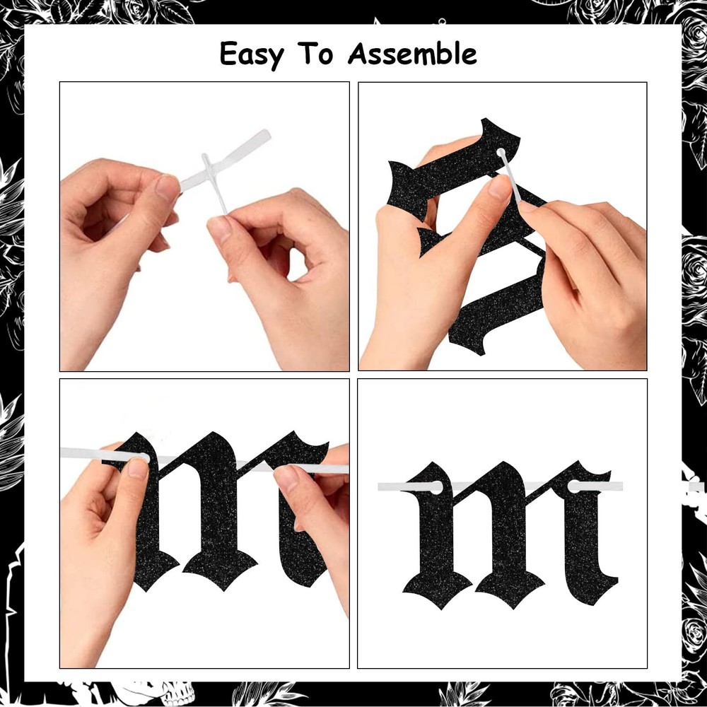 Sursurprise Gothic Bachelorette Party Decorations, Rip to Her Last Name Banner, Old English Emo Bridal Shower Engagement Wedding Party Supplies Gothic Engagement Party Decorations, Rip to Her Last Name Banner Sign Black Gothic Garland, Old English Emo Halloween Bachelorette Bridal Shower Wedding Decor Package Includes: 1pc rip to her last name banner and 1pc Gothic themed garland. Material: Gothic bachelorette party banner kit is made of black glitter cardstock, sturdy and durable. It is eye-catching to hang it on the wall, door, windows, table, mantel, fireplace or other places. Easy To Use: Gothic engagement party decorations are assembly required, it’s easy to thread through punched banners with included pin and ribbon and adjust the spacing. Occasions: Rip to her last name decorations are perfect for Gothic bachelorette party, bridal shower, wedding party, engagement party, Old English party, emo party, Halloween bachelorette party, etc. Gothic Design: Rip to her last name sign in Gothic black letter design will be a wonderful photo backdrop for you and your family and friends. Shipping from the USA All of our products are shipped from the USA, ensuring quick delivery to your destination. Payment We offer the following payment methods: PayPal, credit card, bank transfer, and eBay's secure payment system. Free Shipping & Free Returns Shipping within the USA is FREE. Additionally, any return is absolutely free for you. Risk-Free Purchase You have the option to return an item within 30 days without any justification. We cover the return shipping costs! Fast Shipping We ship immediately upon receipt of payment. Generally, the package is delivered within 2-3 days in the USA. If it takes longer, we will contact you. Quality and Costs Made in Europe, USA, China No customs fees or additional charges Total satisfaction guarantee Invoice with declared VAT available upon request in .pdf format Feedback Your feedback is very important to us. After you pay for your purchase, you will automatically receive positive feedback from us.