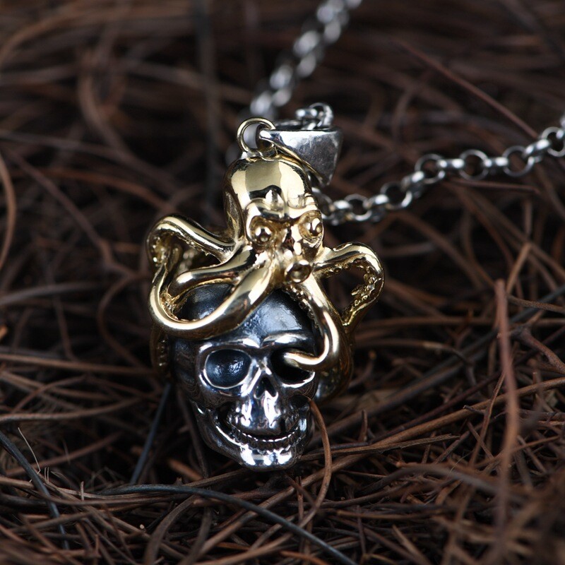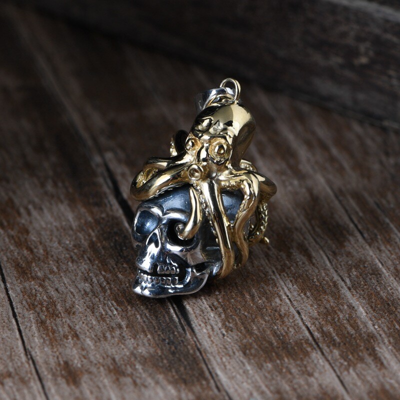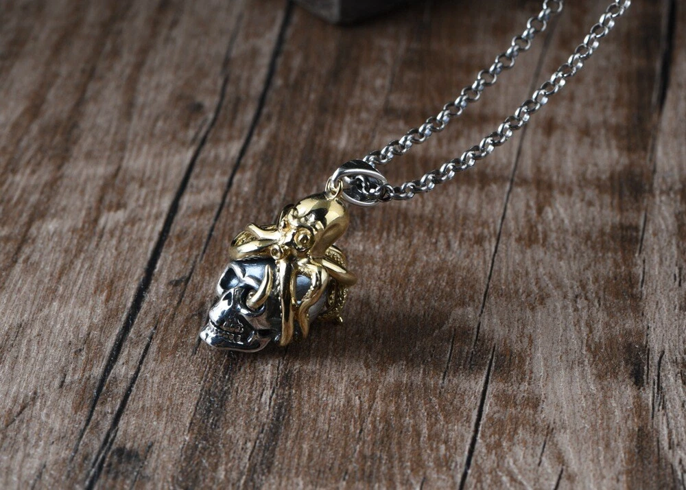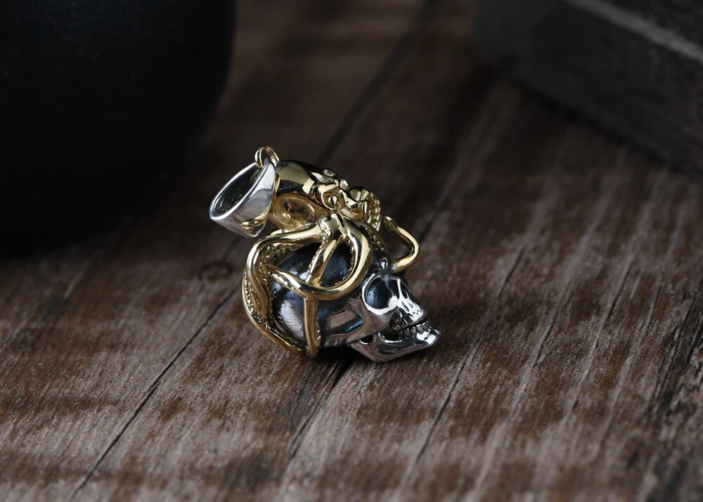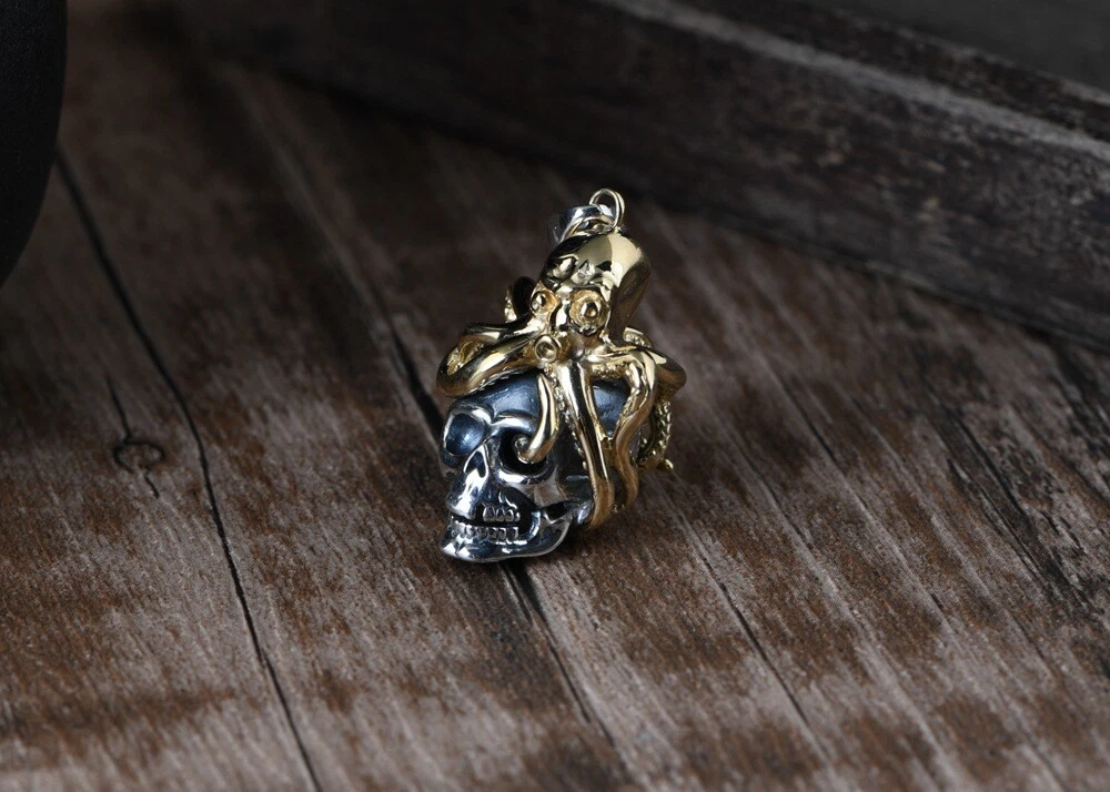 Product Description: π©π **Unleash Your Edgy Charm: S925 Silver Vintage Steampunk Skull Pendant (Chain Not Included)** ππ© Embrace a bold and unique style with this exquisitely crafted skull pendant, seamlessly blending vintage steampunk aesthetics with distinctive Day of the Dead elements. Crafted from high-quality S925 sterling silver and accented with striking gold-toned copper details, this pendant exudes a rich retro vibe and an unrestrained fashion attitude. β¨ **Highlights of This Unique Piece:** β¨ * **Vintage Steampunk Flair:** Featuring an intricately designed miniature Octopus atop a skull, this pendant perfectly marries the whimsical ingenuity of the steampunk era with the mystique of the Day of the Dead. * **Premium S925 Sterling Silver:** The main body of the pendant is made from high-quality S925 sterling silver, ensuring quality and lasting durability. * **Gold-Toned Copper Accents:** The Octo pus and other details are adorned with gold-toned copper accents, creating a striking contrast with the silver and enhancing its vintage charm. * **Vintage Craftsmanship:** Skillfully crafted with a vintage finish, this pendant showcases a unique texture and a sense of history, making each detail a testament to its artistry. * **Designed for Men, Loved by All:** Its strong and stylish design is particularly appealing to men, but its unique charm also makes it a captivating accessory for anyone who appreciates distinctive fashion. π **Product Specifications (Approximate):** π * **Product Name:** Men's Thai Silver Skull Pendant (Chain Not Included) * **Material:** S925 Sterling Silver (Gold parts are Copper) * **Craftsmanship:** Vintage Style * **Dimensions:** * Height: 4.2 cm * Width: 1.3 cm * Thickness: 1.7 cm * **Weight:** 8.9 grams π‘ **Why Choose This Pendant?** π‘ * **Statement Piece:** This unique steampunk skull pendant is a true conversation starter, allowing you to showcase your distinctive taste and personality. * **High-Quality Materials:** The combination of S925 sterling silver and copper ensures both the pendant's luxurious feel and its longevity. * **Masterful Vintage Craftsmanship:** The meticulous vintage detailing lends the pendant a unique character and highlights its exceptional quality. * **Versatile Styling:** Perfect for adding an edgy touch to casual wear, biker outfits, or trendy ensembles, showcasing your versatile style. * **Thoughtful Gift:** An excellent gift for friends or family who appreciate vintage aesthetics, steampunk culture, or skull-themed accessories. π **Please Note:** This product includes the pendant only and does not include a chain. π₯ **Make a Bold Statement β Add This Unique Pendant to Your Collection Today!** π₯ This uniquely styled steampunk skull pendant is the perfect way to express your individuality and elevate your look. Don't miss out β make it yours now!