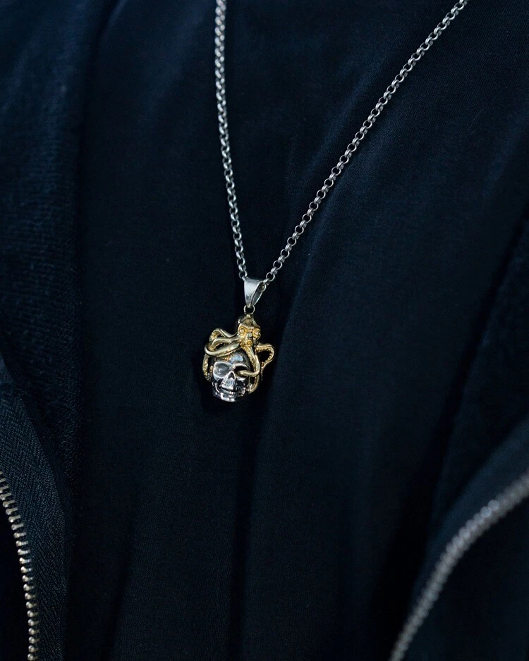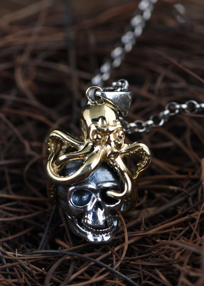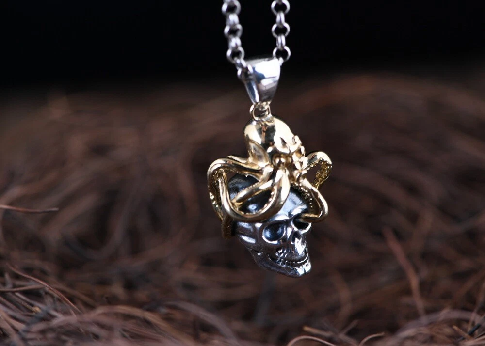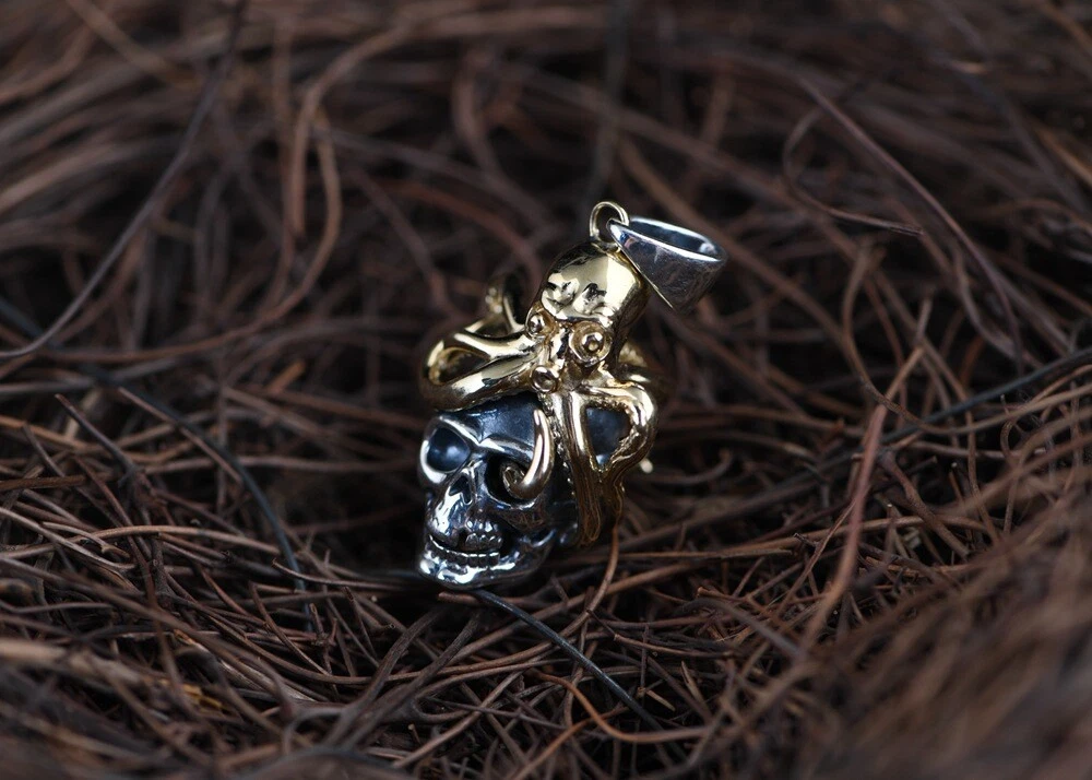 Product Description: π©π **Unleash Your Edgy Charm: S925 Silver Vintage Steampunk Skull Pendant (Chain Not Included)** ππ© Embrace a bold and unique style with this exquisitely crafted skull pendant, seamlessly blending vintage steampunk aesthetics with distinctive Day of the Dead elements. Crafted from high-quality S925 sterling silver and accented with striking gold-toned copper details, this pendant exudes a rich retro vibe and an unrestrained fashion attitude. β¨ **Highlights of This Unique Piece:** β¨ * **Vintage Steampunk Flair:** Featuring an intricately designed miniature Octopus atop a skull, this pendant perfectly marries the whimsical ingenuity of the steampunk era with the mystique of the Day of the Dead. * **Premium S925 Sterling Silver:** The main body of the pendant is made from high-quality S925 sterling silver, ensuring quality and lasting durability. * **Gold-Toned Copper Accents:** The Octo pus and other details are adorned with gold-toned copper accents, creating a striking contrast with the silver and enhancing its vintage charm. * **Vintage Craftsmanship:** Skillfully crafted with a vintage finish, this pendant showcases a unique texture and a sense of history, making each detail a testament to its artistry. * **Designed for Men, Loved by All:** Its strong and stylish design is particularly appealing to men, but its unique charm also makes it a captivating accessory for anyone who appreciates distinctive fashion. π **Product Specifications (Approximate):** π * **Product Name:** Men's Thai Silver Skull Pendant (Chain Not Included) * **Material:** S925 Sterling Silver (Gold parts are Copper) * **Craftsmanship:** Vintage Style * **Dimensions:** * Height: 4.2 cm * Width: 1.3 cm * Thickness: 1.7 cm * **Weight:** 8.9 grams π‘ **Why Choose This Pendant?** π‘ * **Statement Piece:** This unique steampunk skull pendant is a true conversation starter, allowing you to showcase your distinctive taste and personality. * **High-Quality Materials:** The combination of S925 sterling silver and copper ensures both the pendant's luxurious feel and its longevity. * **Masterful Vintage Craftsmanship:** The meticulous vintage detailing lends the pendant a unique character and highlights its exceptional quality. * **Versatile Styling:** Perfect for adding an edgy touch to casual wear, biker outfits, or trendy ensembles, showcasing your versatile style. * **Thoughtful Gift:** An excellent gift for friends or family who appreciate vintage aesthetics, steampunk culture, or skull-themed accessories. π **Please Note:** This product includes the pendant only and does not include a chain. π₯ **Make a Bold Statement β Add This Unique Pendant to Your Collection Today!** π₯ This uniquely styled steampunk skull pendant is the perfect way to express your individuality and elevate your look. Don't miss out β make it yours now!