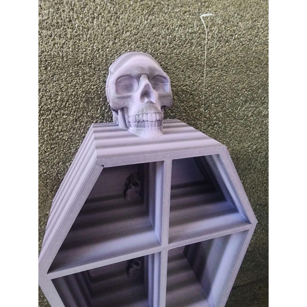 Embrace your dark and spooky side with this Coffin Shelf! Perfect for displaying your favorite trinkets, collectibles, or Halloween decor, this shelf brings a touch of gothic elegance to any room. The coffin shape adds a bold statement, making it an eye-catching piece for horror lovers, alternative decor enthusiasts, or anyone looking to add a bit of mystery to their space. Hang it on your wall or use it as a tabletop display to showcase candles, crystals, or small Halloween-themed items. Its unique design will stand out, creating a spooky atmosphere all year round. Features: Gothic coffin design: Adds a dark and stylish touch to your decor. Versatile display: Great for trinkets, candles, crystals, or other small decor. Durable and lightweight: Built to hold small items securely. Materials: High-quality, sturdy materials for long-lasting use. Shipping: Ships in 1-2 business days. Designed By: AnarchistLlama