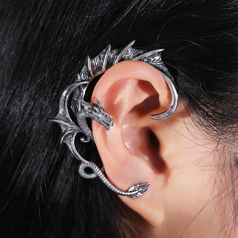 【Unique and stylish design】- The Gothic Dragon Ear Cuff is a one-of-a-kind accessory that combines retro and punk elements. With its silver color and snake dragon design, this ear cuff exudes a hip hop vibe that is perfect for both men and women. 【High-quality stainless steel】- Made from premium stainless steel, this ear cuff is durable and long-lasting. It is resistant to tarnishing and corrosion, ensuring that it stays in excellent condition even with daily wear. 【Versatile and adjustable】- This ear cuff is designed to wrap around the cartilage of the ear, giving it a unique and edgy look. It can be easily adjusted to fit different ear sizes, making it suitable for both men and women. 【Easy to wear and remove】- The cuff design of this ear cuff makes it easy to wear and remove without the need for any additional piercing. Simply slide it onto the desired part of the ear and adjust it for a comfortable fit. 【Perfect for any occasion】- Whether you're going for a casual or a more formal look, this Gothic Dragon Ear Cuff is a versatile accessory that can elevate any outfit. Wear it to parties, concerts, or even just for everyday wear to make a bold fashion statement.