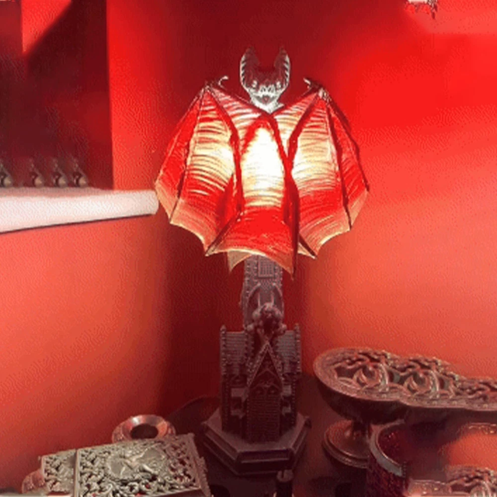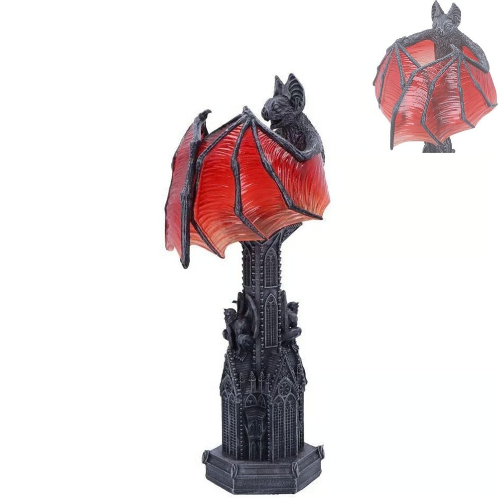 Gothic Of Night Halloween Lamp – Gothic Decor Bat Wing Light With Red Glow Cathedral Base Table Lamp For Room Or Witchy Night Setting Features: Gothic of Night Design – Featuring a bat with outstretched red , this halloween lamp brings eerie to any gothic decor or -themed room. A true statement piece for lovers of the dark aesthetic Red Glow for Halloween Atmosphere – The red bat wing light a candle-like glow, perfect for room decor, night settings, or witchy home corners. Create a mysterious and enchanting vibe instantly Cathedral- Gothic Base – Intricately crafted with gothic cathedral architecture, this table lamp antique charm and medieval to your home, bookshelf, or altar Resin Construction with Hand-Painted Detail – Made from quality resin, this gothic night light offers long-lasting use. The hand-finished each piece is in its bat lamp Ideal for and Witchcore Lovers – Whether decorating for Halloween or building a gothic bedroom, this bat wing lamp is perfect for fans of witchcraft decor, gothic collectibles, or house aesthetics Product Description: Add a hauntingly beautiful glow to your space with the Gothic Bat Wing Halloween Lamp. Designed with a cathedral-style resin base and outstretched bat wings, it casts an eerie red light perfect for witchy rooms, gothic décor, or Halloween ambiance. Crafted from durable resin and powered by batteries (not included), this portable lamp is ideal for desktops, shelves, nightstands, or altar setups. Whether you're decorating for a spooky party or curating a year-round dark aesthetic, this lamp brings moody magic to any space.