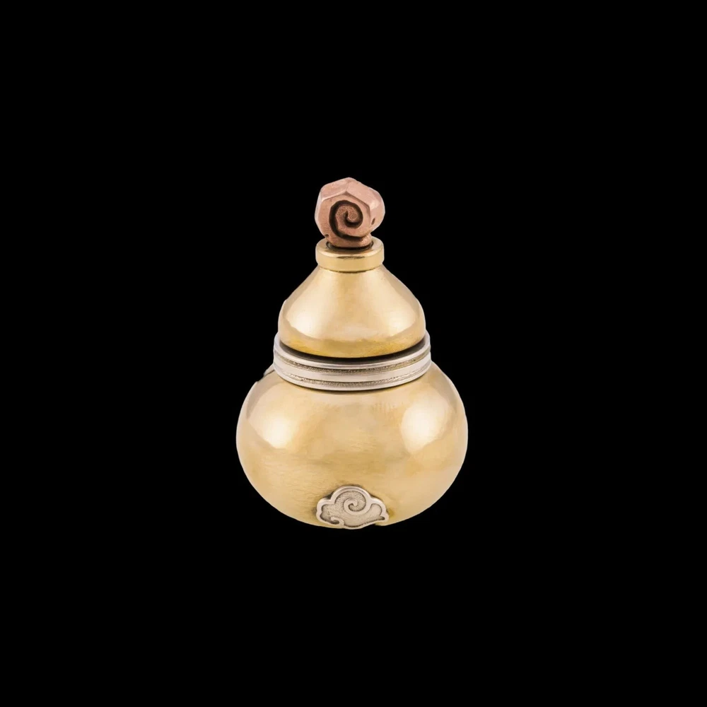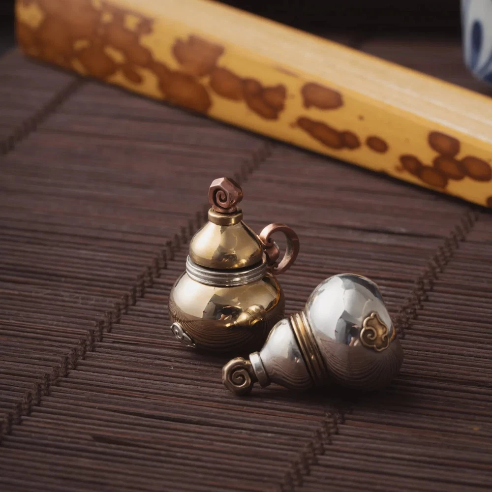 Gourd Pendant: The design is inspired by the gourd, which symbolizes hope and radiates blessings and prosperity. In oriental cultures, gourds are revered for their association with longevity, good luck, and spiritual growth. Exquisite Craftsmanship: Carefully crafted with attention to detail, the gourd pendant features a swivel handle and waist with a rubber ring to hold it in place, ensuring functionality and elegance. Delicate 925 silver auspicious clouds and ruyi motifs embellish its base, reflecting the desire for a beautiful and peaceful life. Materials & Size: Made of brass, copper, and silver to enhance the details and beauty of the pendant. Size: 1.1 inches (L) x 0.75 inches (W). Weight: 10g. This is not just a piece of jewelry; it is also a talisman of positivity and potential, inspiring the wearer towards a brighter future. Multi-Purpose Accessory: This gourd pendant easily converts to a necklace with a chain (not included) and is the perfect addition to any necklace, bracelet, or other DIY project. Its lightweight and compact design makes it ideal for everyday wear. Hole Size: 0.26” / 5.5mm. Amulet Gift: Its delicate design and deep symbolism make it the perfect gift for yourself or a loved one. Whether for a friend embarking on a new journey or a family member seeking encouragement, this gourd pendant is a meaningful symbol of hope and a promise of a better life ahead.