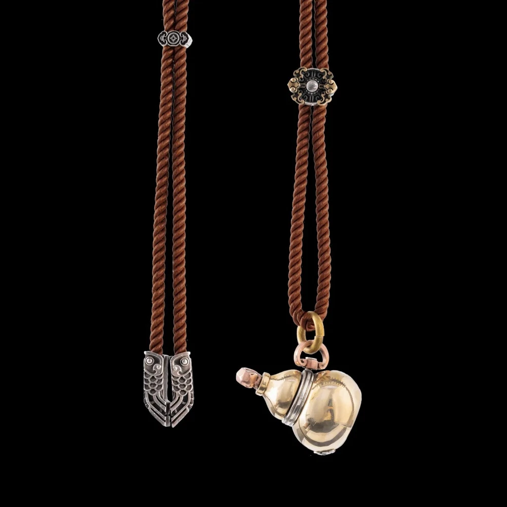Metal: Brass Material: brass, oxidized silver, copper Type: Necklace Color: Gold Brand: Coppertist.wu Occasion: Anniversary, Birthday, Christmas Theme: gourd Style: Pendant Chain Type: Rope Base Metal: Brass Pendant/Locket Type: Vessel Pendant