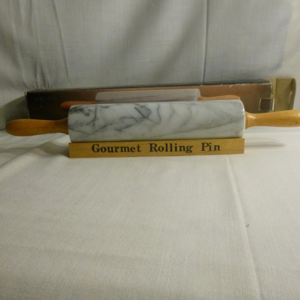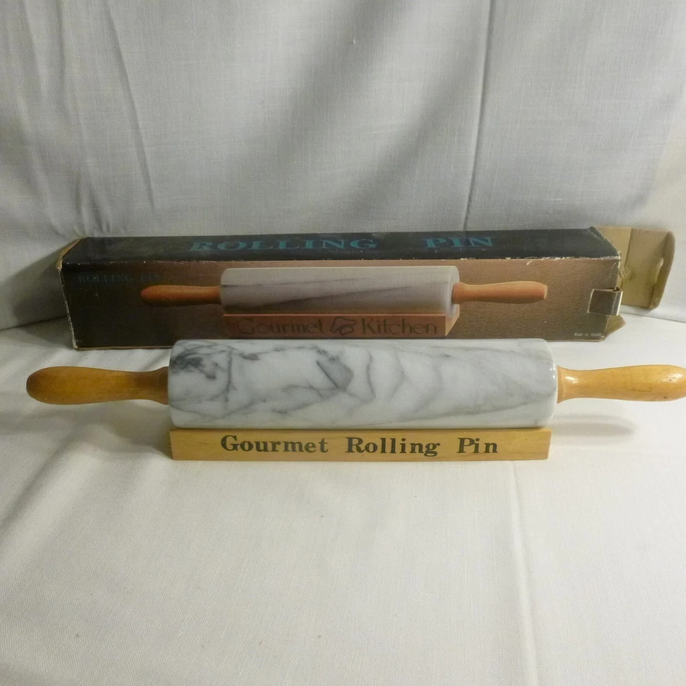 For Your Consideration: Gourmet Kitchen - Marble Rolling Pin with Wooden Cradle Holder & Handles CONDITION This item is MINT. All packaging is original. This item has never been out of its container except for inspection or photos. This has been stored in a smoke free home. ***MEASUREMENTS*** Most of my photos are taken in front of a 1" square grid to give a better indication of size. Payment Payment is due within 3 days after the end of auction unless other arrangements have been specified. If payment has not been received within 7 days, we reserve the right to cancel the transaction. Shipping Item will be shipped within 1 Business day after payment is received. We are happy to offer a combined shipping discount on most orders. Discount is based on the size and quantity of items ordered. Please request a combined shipping invoice prior to payment. FEEDBACK I will leave feedback once I have received your feedback to assure you are satisfied with your purchase. Please resolve any questions prior to bidding. Please check my other eBay items regularly as I will continue to add new items of interest as well as other collectibles. Important Information for International Buyers Import duties, taxes, and charges are not included in the item price or shipping cost. These charges are the buyer's responsibility. Please check with your country's customs office to determine what these additional costs will be prior to bidding or buying. Powered by SixBit's eCommerce Solution