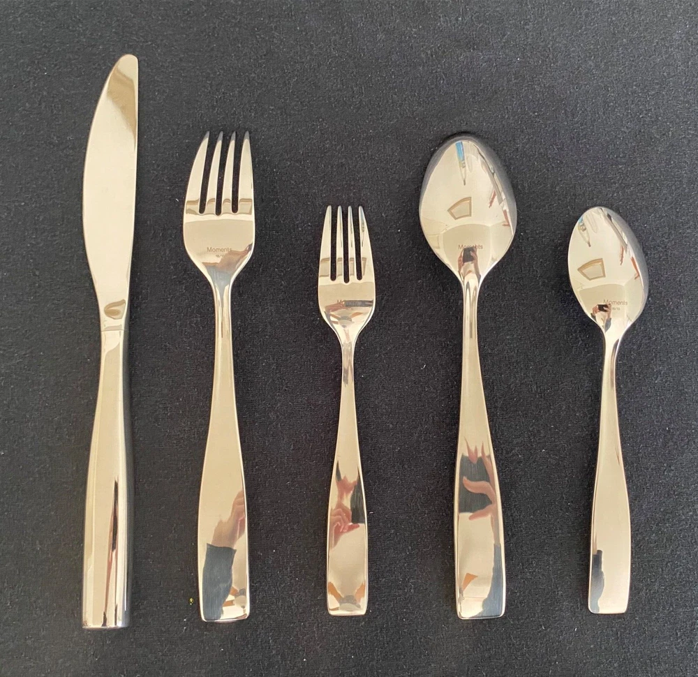 GOURMET SETTINGS MOMENTS~5 pc. Place Setting~10/10 Stainless Steel~Mirror Finish *Brand: Gourmet Settings *Moments *18/10 Stainless Steel *5 Piece set *Includes: 1 teaspoon, 1 tablespoon, 1 salad fork, 1 dinner fork, and 1 dinner knife *Dishwasher Safe *Mirror finish NEW with in original retail packaging