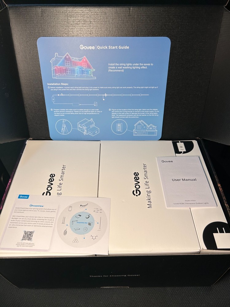 Govee Permanent Outdoor Lights, Smart RGBIC Outdoor Decor with 75 Scene Modes, 100ft with 72 LED Lights, IP67 Waterproof for Holiday Decorations, Compatible with Alexa, Google Assistant, Black **Ships free to the lower 48 states**