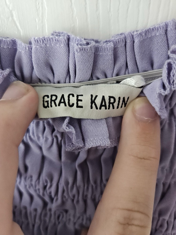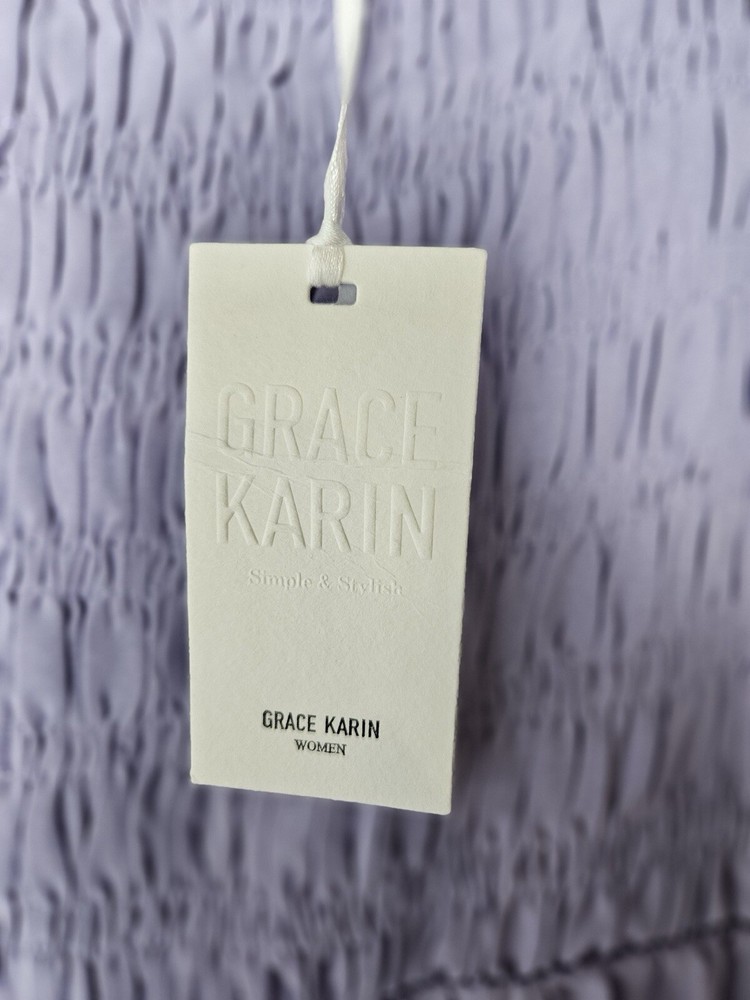 Add a touch of elegance and sophistication to your wardrobe with this stunning Grace Karin Lavender Roushed Too Spaghetti Strap Dress in size Small. With its solid pattern, strappy sleeves, and beautiful accents, this dress is perfect for any occasion, whether it be a wedding, party, casual outing, or even travel. The dress is made of a blend of polyester and viscose, making it comfortable and machine washable for easy maintenance. The fit and flare style of this dress is designed to flatter the figure, while the long length adds a touch of class. The dress is not only stylish but also versatile, making it a great addition to any wardrobe. Whether you're dressing up or down, this dress is sure to turn heads. So, why wait? Add this gorgeous Grace Karin dress to your collection today! Pit to Pit 12" (stretch material) Dress length from center chest is 42"