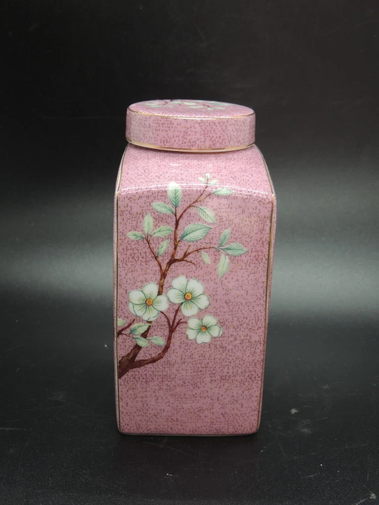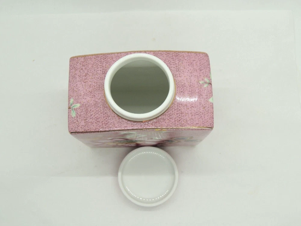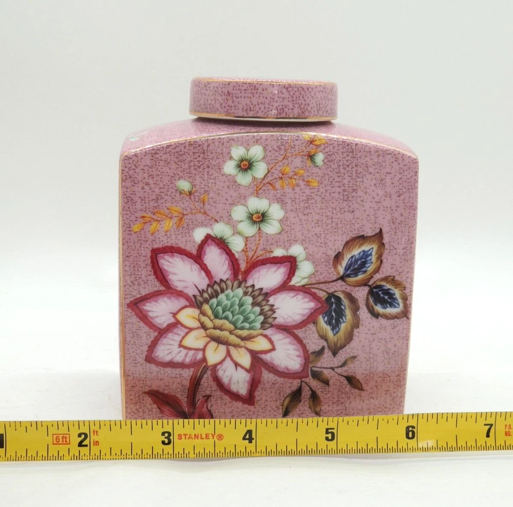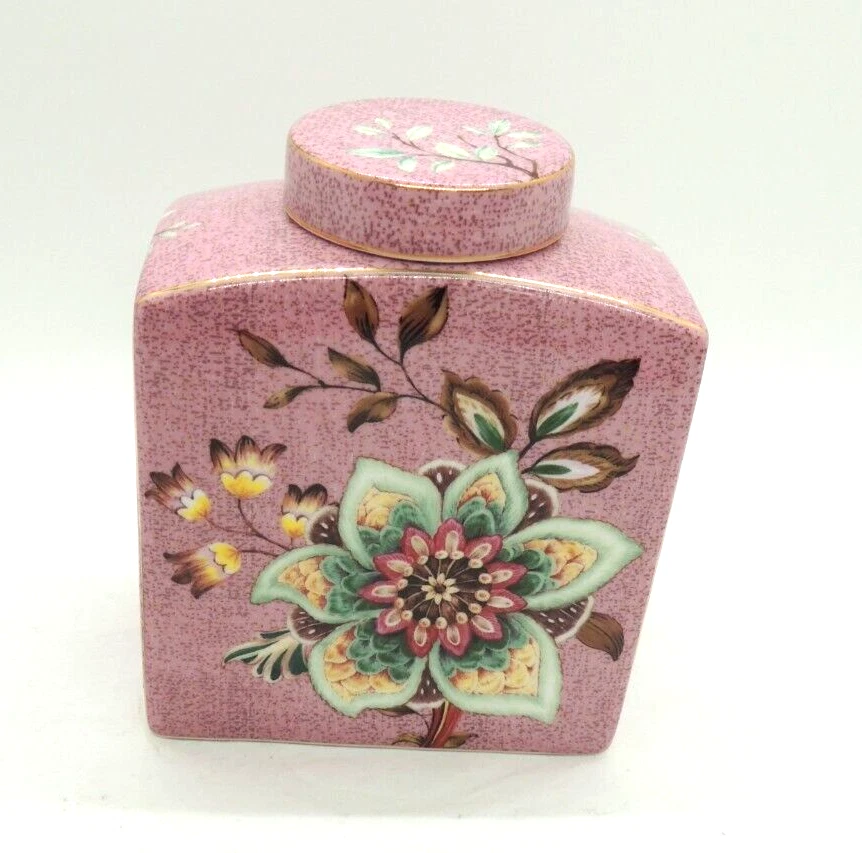 Grace Teaware Ceramic Square Tea Caddy Tea Box Tea Jar with Lid Mauve Floral -Measures about 4 1/2" tall by about 3 3/4" wide -Pre-owned in very good condition with no chips or cracks, may show slight signs of shelf ware, beautiful color and design -Please examine all photos, they are part of the description -Comes from a smoke free home -If you have any questions, please ask