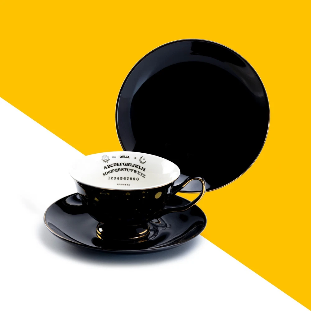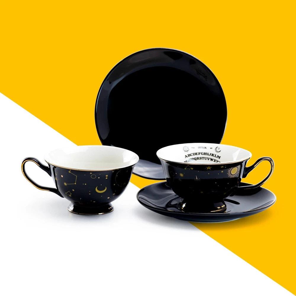 Each set includes - 1 cup with 1 saucer Cup Dimension: 2.75” Height x 5” Width x 4" Depth Capacity - 7oz Saucer Diameter: 6" Dishwasher Safe Hand wash recommended Not microwave safe due to gold trim