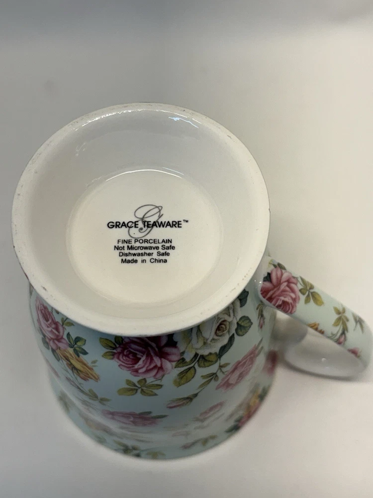 Grace Teaware Porcelain Coffee Tea Cup Light Green Roses Flower Chintz 4.5 T