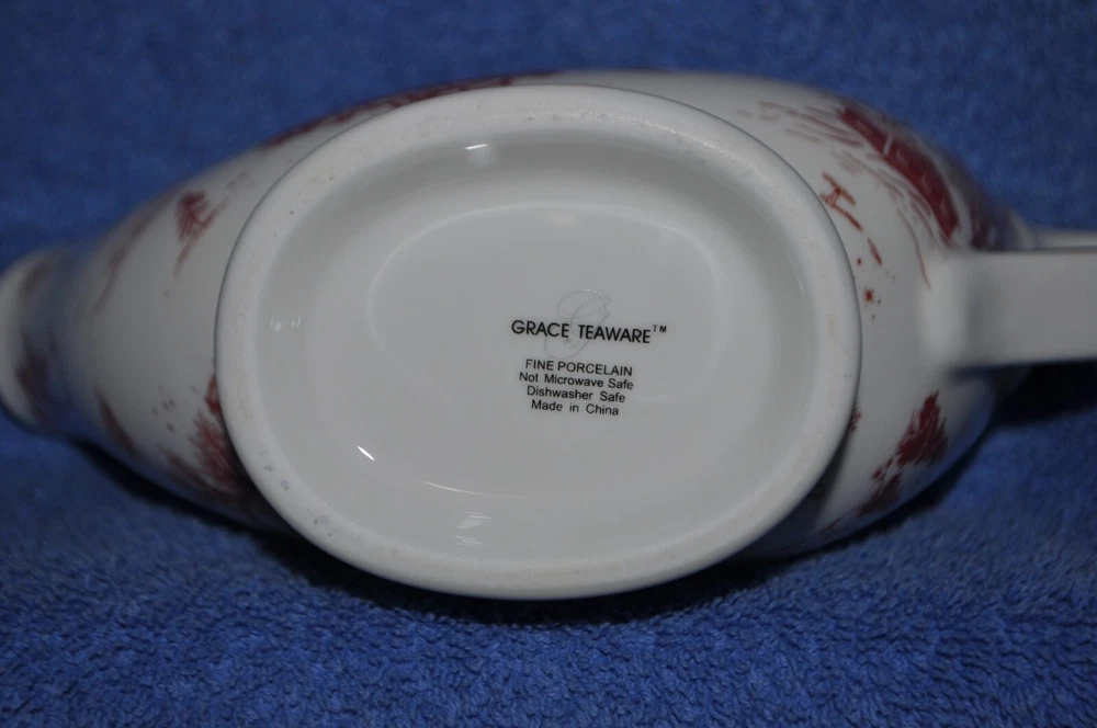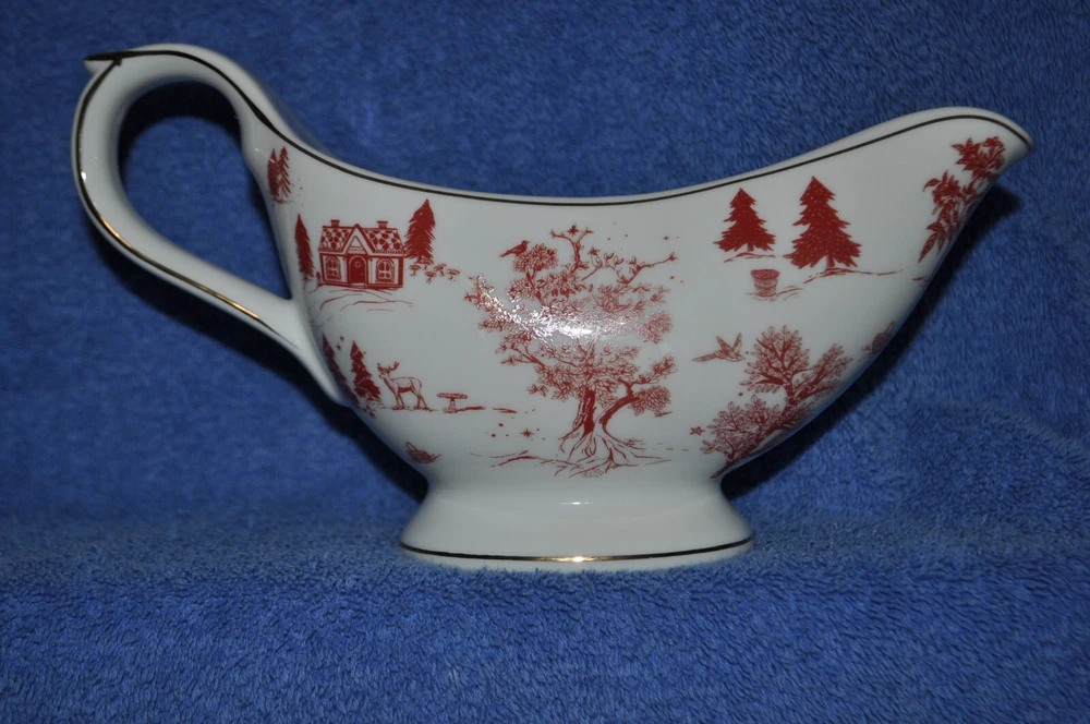 Brand New Grace Teaware Woodland Gravy Boat, Gravy Boat Is Read And White With Gold Trim And Accents. Measures Approximately 3 3/4" Tall To Spout. Top Opening Is 6 1/4" Long And 2 1/4" Wide. Holds Approximately 10 oz. gravy. Thanks For Looking.