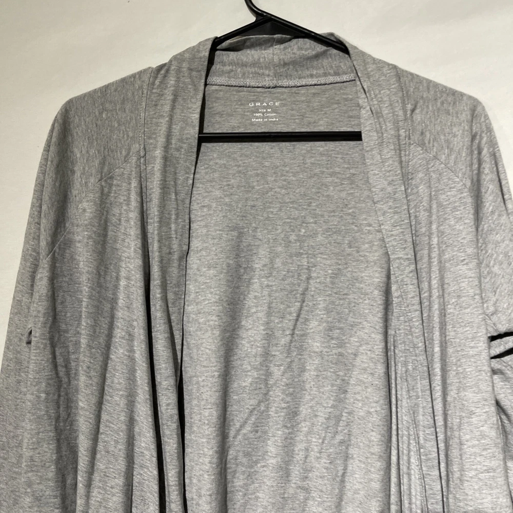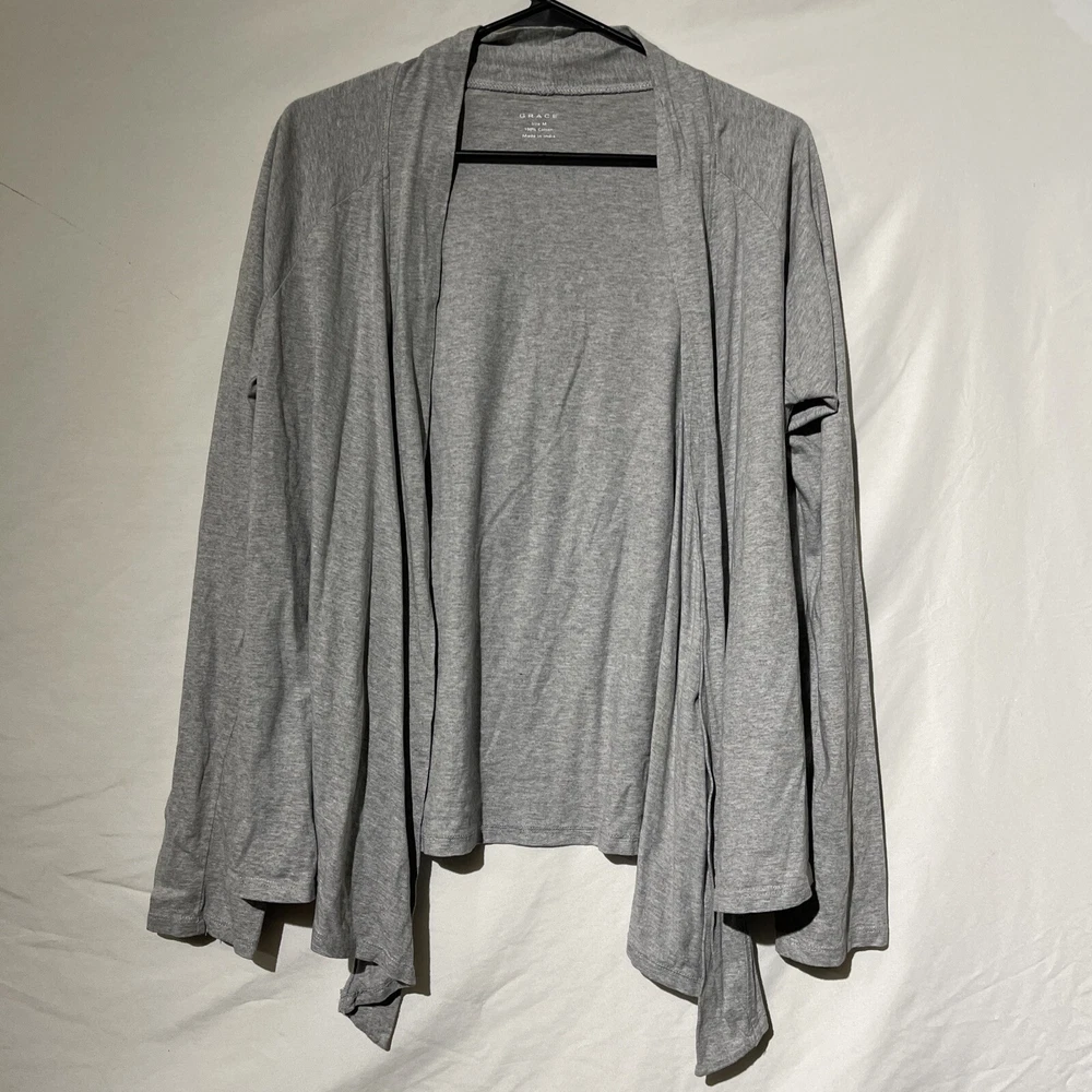 Grace Womens Size Medium Long Sleeve Cardigan Over Shirt Top Gray. Condition is Pre-owned. Shipped with USPS Ground Advantage.