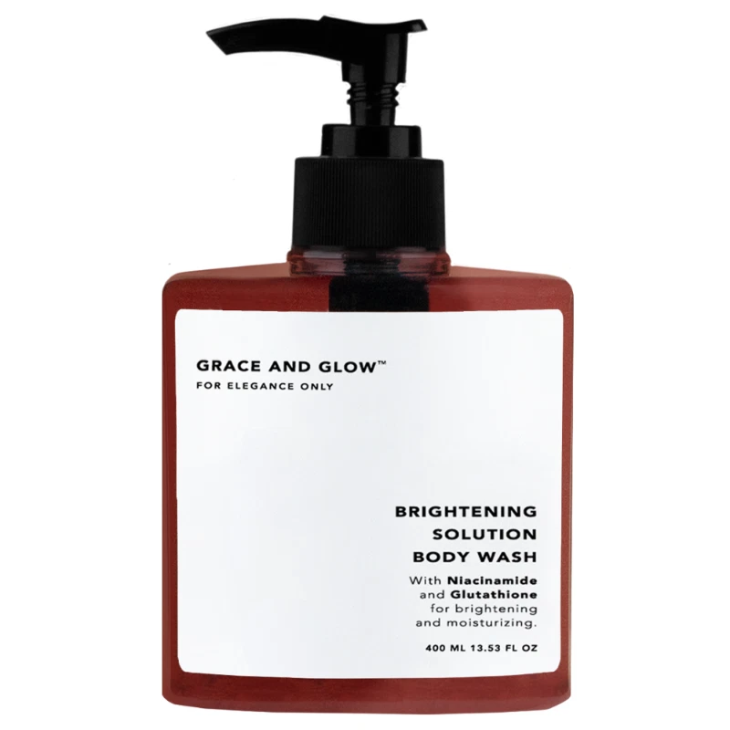 Grace and Glow Brightening Solution Body Wash Netto: 400 ML 1. BENEFITS Helps skin look brighter Provides a luxurious perfume sensation Cleanses skin to look radiant 2. MAIN COMPOSITION Niacinamide Glutathione 3. HOW TO USE Pour enough Body Wash on your hands or shower puff, gently rub slowly and clean all parts of the body, let stand for 30 seconds. Rinse with water. Use every day for maximum results