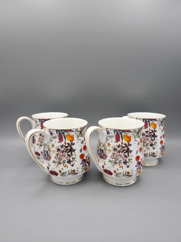 Grace's Teaware Colorful Floral Footed Coffee Tea Cups with Gold Trim Set of 4 Measures approximately 4" H x 3" in diameter. For a comprehensive evaluation of the item's condition, I recommend reviewing the attached photos. They provide a detailed visual representation that will assist in your assessment. Please be aware that this item is being sold in a vintage/used condition, which may include signs of wear consistent with its age. Every effort has been made to accurately describe and photograph any flaws or imperfections present. However, due to the nature of vintage/used items, minor flaws may go unnoticed. If you have any questions or require additional photos, please don't hesitate to reach out before making your purchase. Your satisfaction is our priority, and we want to ensure a transparent and enjoyable shopping experience. To initiate a refund for an item damaged during shipping, please provide a clear photo of the merchandise and its packaging within 3 days of delivery. This documentation is necessary to process your refund efficiently.