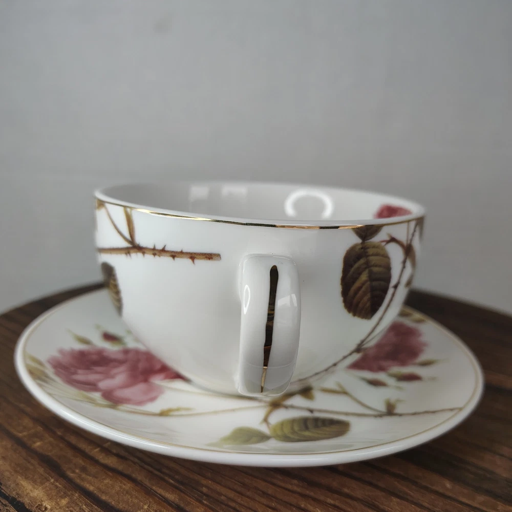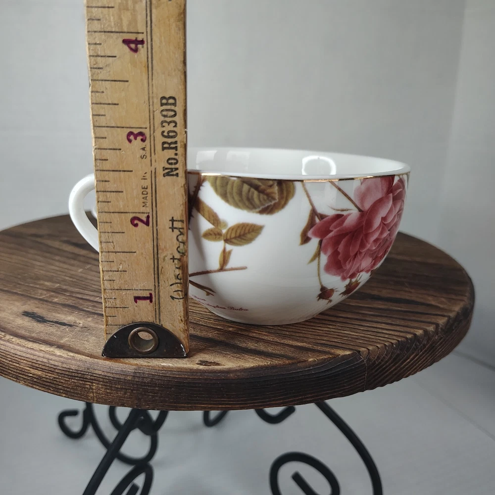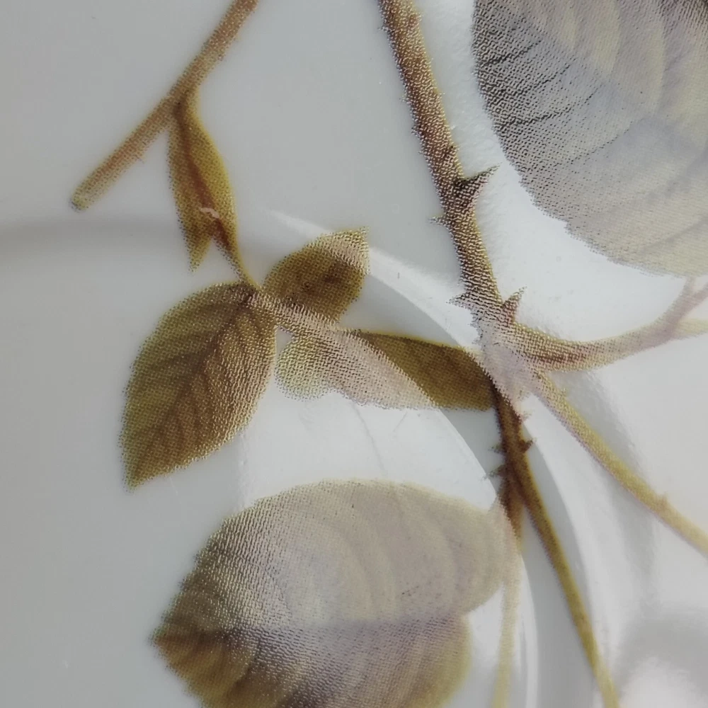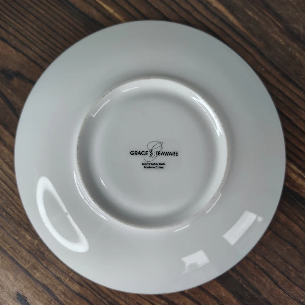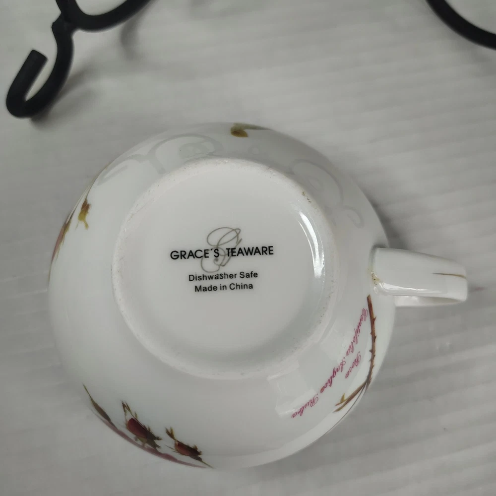 Some scratches on the saucer and on the teacup. Please see measurements and review all pictures provided which show condition and zoom in to get a closer look. Let me know if you have any questions! : )