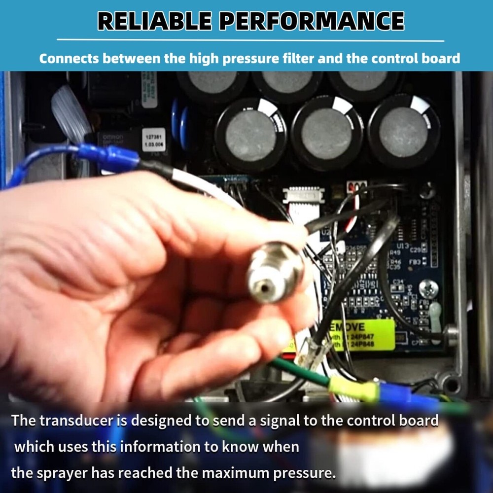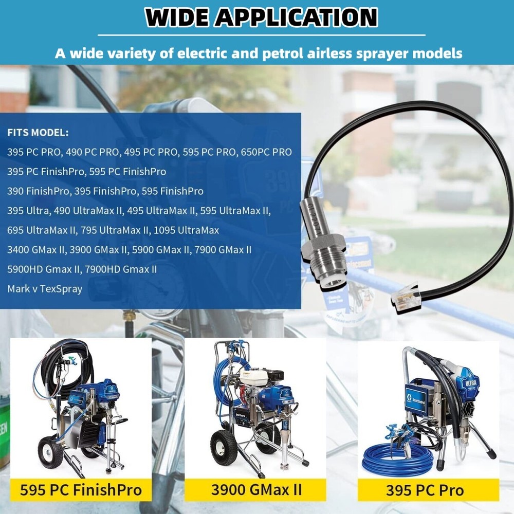 Pressure Transducer Sensor 243222 For Graco Airless Paint Sprayers 390 395 495 【 Models are】 190ES, Ultra Models -210ES,210PC,230PC,295ST;UltraMax and UltraMax II-390, 395, 490, 495, 595;UltraMax and UltraMax II -695, 795, 1095, 1595;PC Pro- 390 395 490 495 595 695 795 1095 1595;GMAX and GMAX II -3400, 3900, 5900, 7900;Linelazers-3400, 3900, 5900, 7900. Please note: This product is compatible with Graco sprayers and is not compatible with Titan sprayers. 【Wide Application】 This Pressure Transducer is used in a wide variety of electric and petrol airless sprayer models. Directly replace part for 243222 【Superior Quality】 Constructed from high quality stainless steel, with wear resistant washer, durable and sturdy. 4-Core silica plug fits perfectly with the model of the machine. 【Reliable Performance】 The pressure transducer connects between the high pressure filter and the control board. The transducer is designed to send a signal to the control board which uses this information to knowwhen the sprayer has reached the maximum pressure. 【Easy Installation】 It takes you less than a few minutes to install, guided by the relevant instructions. 【Satisfactory Service】 If you are not satisfied with our products.You can request a full refund within 60 days to support a 12 month warranty.