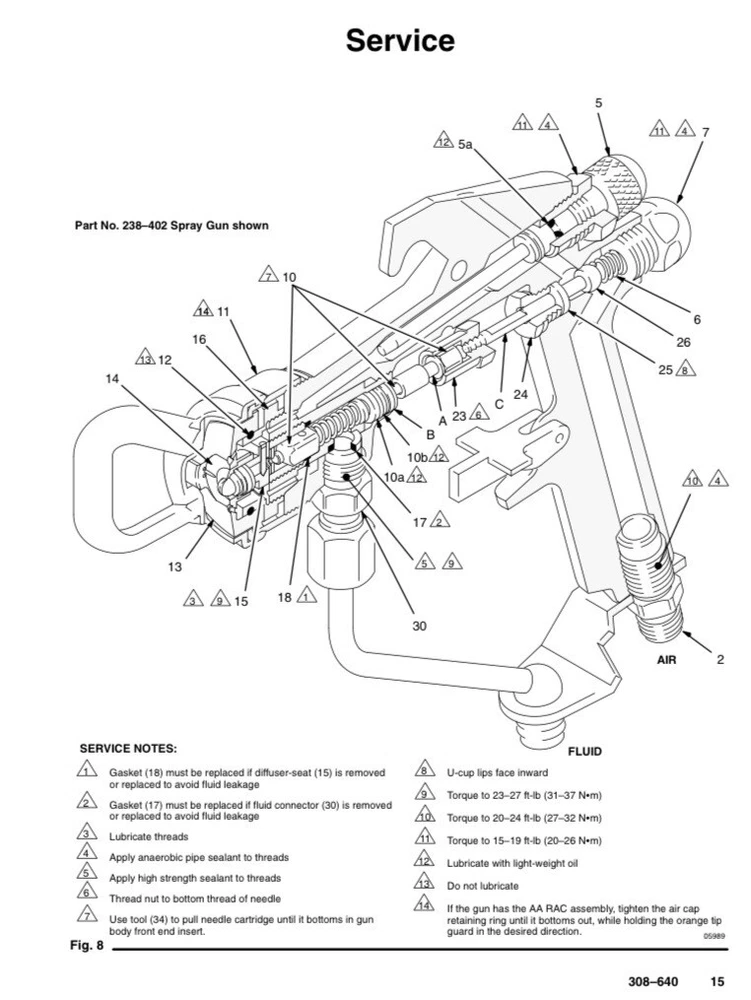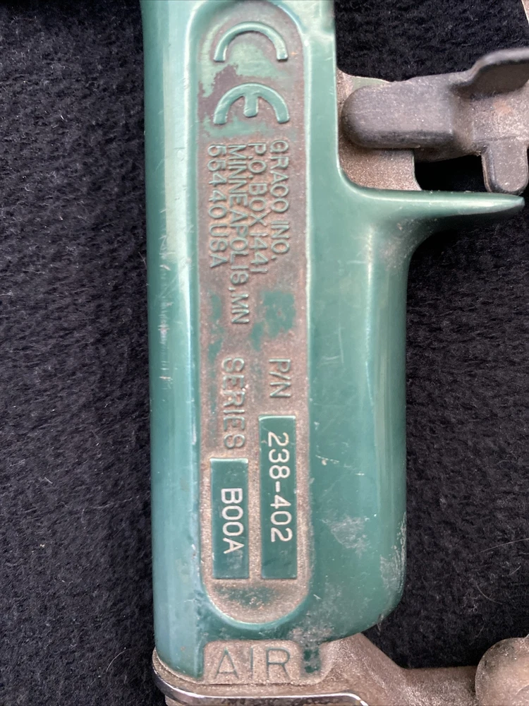 HIGH PRESSURE AIR-ASSISTED Model AA Plus Spray Gun 4000 psi (28 MPa, 280 bar) Maximum Working Fluid Pressure 100 psi (0.7 MPa, 7 bar) Maximum Working Air Pressure Part No. 238–402, Series A Spray Gun with standard spray tip, tip guard, air cap, and 1/4–18 npsm (R1/4–19) air line fitting. Unknown working condition
