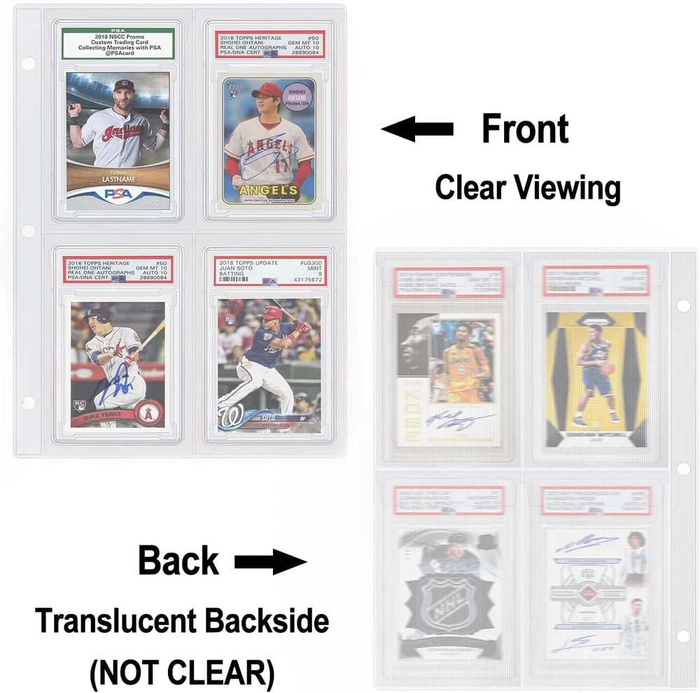 Store New Arrivals Add to Favorite View Feedback Contact Graded Card Slab Binder Pages for Storage & Display, Compatible with 40 PSA, BGS Description Max Input Sheet Capacity 10 Sheet Size Approximately 8.6 x 11.8 inches (Letter size) Number of Items 40 Brand Fageverld Material Plastic Material Type Plastic Manufacturer Part Number PG-4PK-10 Style Sports Item Weight 0.28 Kilograms Product Dimensions 11.8 x 8.6 x 0.04 inches Manufacturer Fageverld Heavy-duty and durable graded card slabs holder pages. Premium thickness ensures the pocket is not easy to break. 10 pages hold 40 card slabs. An economical and convenient way to store and display your graded card slabs and keep them in mint condition, preventing scuffs and scratches. It fits PSA, BGS, BCCG, and CGC card slabs, but it DOES NOT fit GMA or SGC slabs. It works but not for all graded card company slabs. 3-hole punched, fit for 3 ring binder. Top loading with protective flap. Simple & Versatile - Well sized for a variety of different graded card slabs including PSA, BGS, & CGC. ABOUT US We offer the best prices around on high quality products. Our E-store includes media such as books, movies, music and games while offering electronics, toys, sporting apparel, clothing, tools, general home, garden items and more. SHIPPING We are always working hard to ensure your package arrives as soon as possible. Please understand that some factors like weather, high postal traffic, and the performance of shipping companies are outside of our control. We offer free shipping to the lower 48 states and ship within 2 business days of payment, usually sooner. We do not accept P.O. Boxes. Please provide a physical address. RETURNS We offer a 30-Day Return Policy on items which you are not completely satisfied with. You have the option for a full-refund or an exchange of the item. No returns are available on items shipped outside of the USA. PAYMENT We accept PayPal. CONTACT US This page content is yet to come Please ad us to your favorite seller and visit again later Thank You CUSTOMER SATISFACTION We try our very best to make sure every customer is completely satisfied. If there's a problem, message us! We're happy to help.