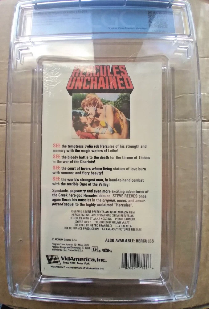 This rare & Collectible Betamax SEALED 9.4 A+ Grade Hercules Unchained (Uncut Version, limited release for this film) is a must-have for any movie lover's collection. The 1989 release, from the original 1959 film, starring Steve Reeves and rated PG, is an action-packed adventure. The tape is sealed, 35 years old and in A+ Mint condition! and comes with a grade of "Betamax the rarest video format of all ,9.4, ensuring that you are getting a high-quality valuable movie Collectible piece. The movie is in English and has a runtime of approximately 90 minutes. Don't miss out on the chance to add this classic rare historic film to your collection and to your movie library.