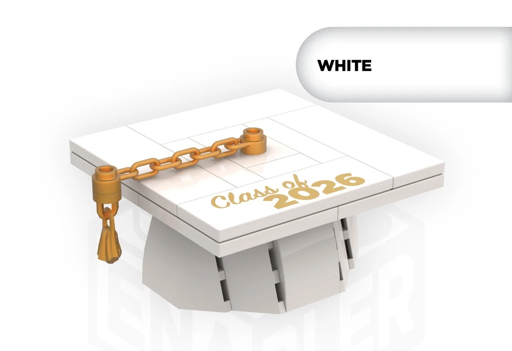 Custom LEGO Graduation Cap Kit with Digital Instructions. Available in 4 colors. Includes "Class of 2026" premium vinyl sticker. Dimensions: Built, not including the tassel, the cap is a little over 2.5" x 2.5" wide x 1.5" tall. Packaging is 5" x 8" Visit our store to see more custom LEGO kits! This is a custom MOC ma de with 100% genuine new LEGO but these are not official LEGO® sets. LEGO® is a registered trademark of the LEGO Group®. The LEGO Group® does not sponsor, authorize or endorse these products.