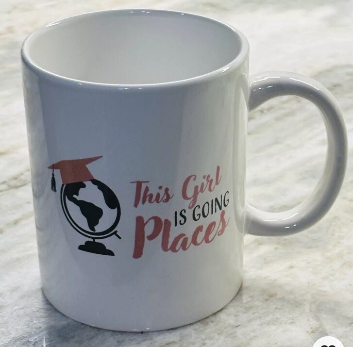 Celebrate a special graduation moment with the "THIS GIRL GOING TO PLACES" Coffee Mug, a charming 14 oz. ceramic cup designed to bring a smile to anyone's face. Its classic round shape and white color provide a clean, versatile backdrop for the heartwarming novelty pattern and artful style, making it an ideal gift for cherishable occasions. Crafted for convenience, this mug is both dishwasher and microwave safe, ensuring easy care and use. The loving family theme, combined with its durability and capacity, makes it a practical choice for daily enjoyment or as a memorable graduation keepsake. Whether it's for your own indulgence or as a present, this coffee mug is a delightful addition to any kitchen.