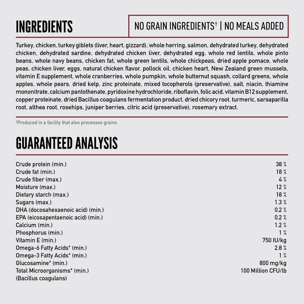 (1) 4 lb bag of Small Breed Grain Free* Dry Dog Food grain free* dog food for small dogs is tailored to meet the nutritional needs of your small dog with a unique kibble shape that's easier to eat Grain free* dog food containing 85 percent** animal ingredients, including WholePrey ingredients like nourishing organs to mimic what your dog's ancestors consumed in the wild First five ingredients are fresh or raw poultry and fish, so your dog can get a high protein dog food with the protein, vitamins and minerals they need Dry dog food kibble is made in the USA with quality ingredients from around the world; no soy, corn, tapioca or wheat ingredients are added in our kitchen