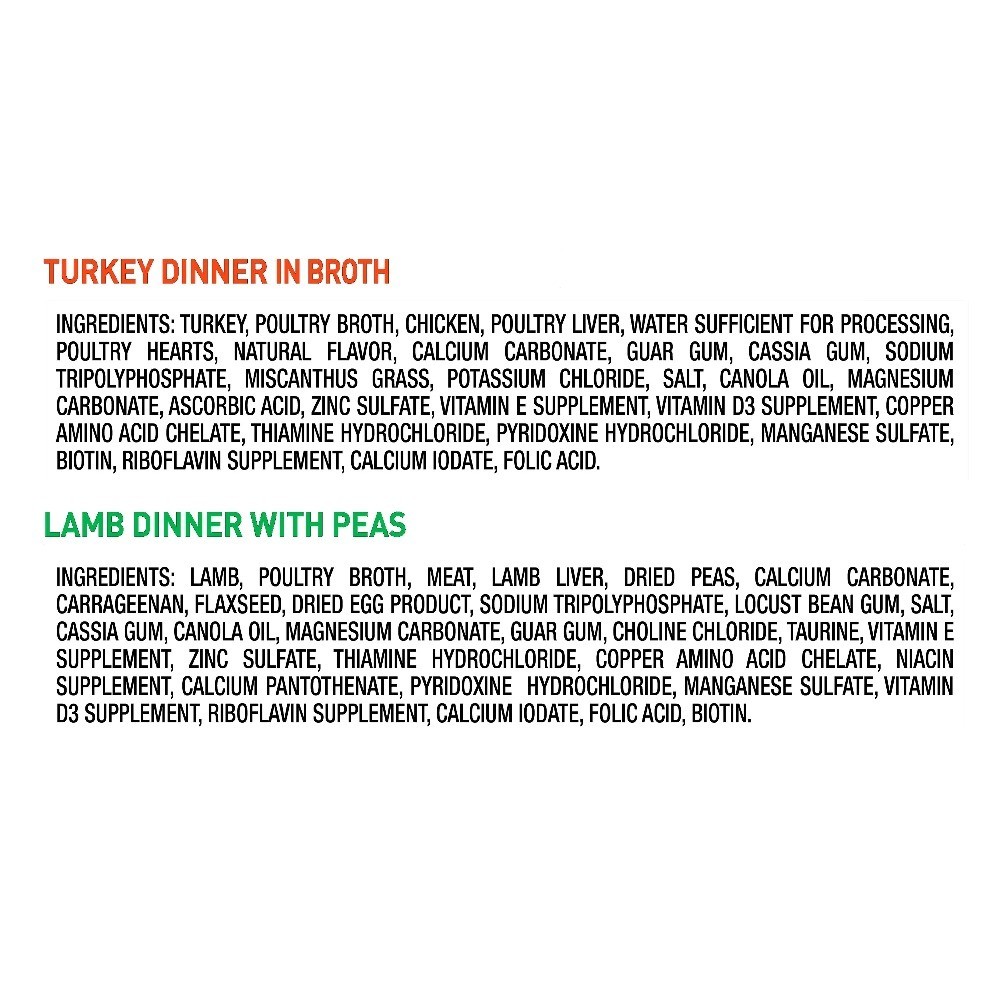 Your dog will be tasting a piece of the good life when you fill up their bowl with this Grain-Free Wet Dog Food Variety Pack. Moist, tender, and irresistibly delicious are just a few words your pup might use to describe this hearty meal if they could talk. This 12-pack includes six trays of Turkey Dinner in Broth and six trays of Lamb Dinner with Peas. For the best ingredients, pure and simple, pick up the Grain-Free Wet Dog Food Variety Pack today. At , we believe in one idea – the best nutrition for your pet starts with ingredients you can trust. Each of our super premium recipes are made with natural ingredients with added vitamins, minerals and other nutrients to your pet gets the nutrition they need. Its the way. Pure and Simple. Grain-Free Wet Dog Food Variety Pack, 3.5 oz Trays, 12 Count Includes 6 Turkey Dinner in Broth and 6 Lamb Dinner with Peas Moist and tender wet food for dogs in 3.5 oz trays No artificial colors The amount of food your dog requires will depend on activity, age, environment, and breed Feed at room temperature and refrigerate unused portions Always provide access to clean, fresh water