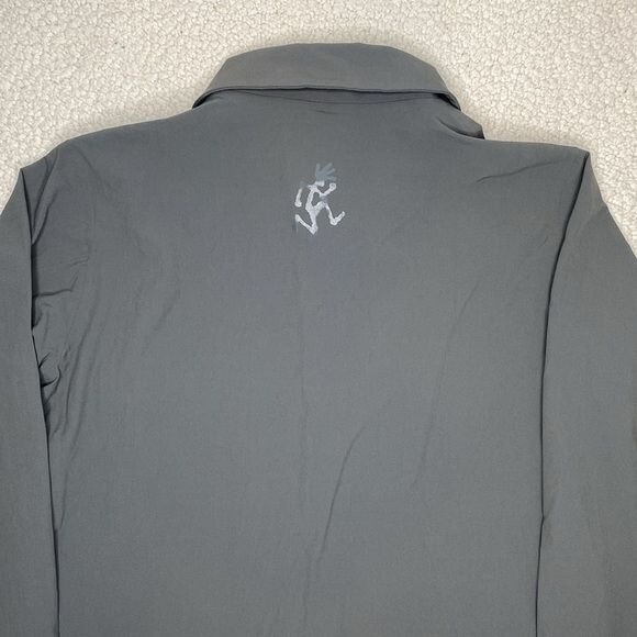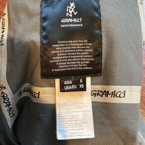 Great condition This grey Gramicci Pertex stretch technical jacket features a classic point collar, concealed press stud fastening, zip chest pocket, zipped side pockets with reflective detailing, long sleeves with concealed buttoned cuffs, logo to the back neck and interior woven logo tape trim Style: GCJK19F086 Length: 28” P2P: 20”