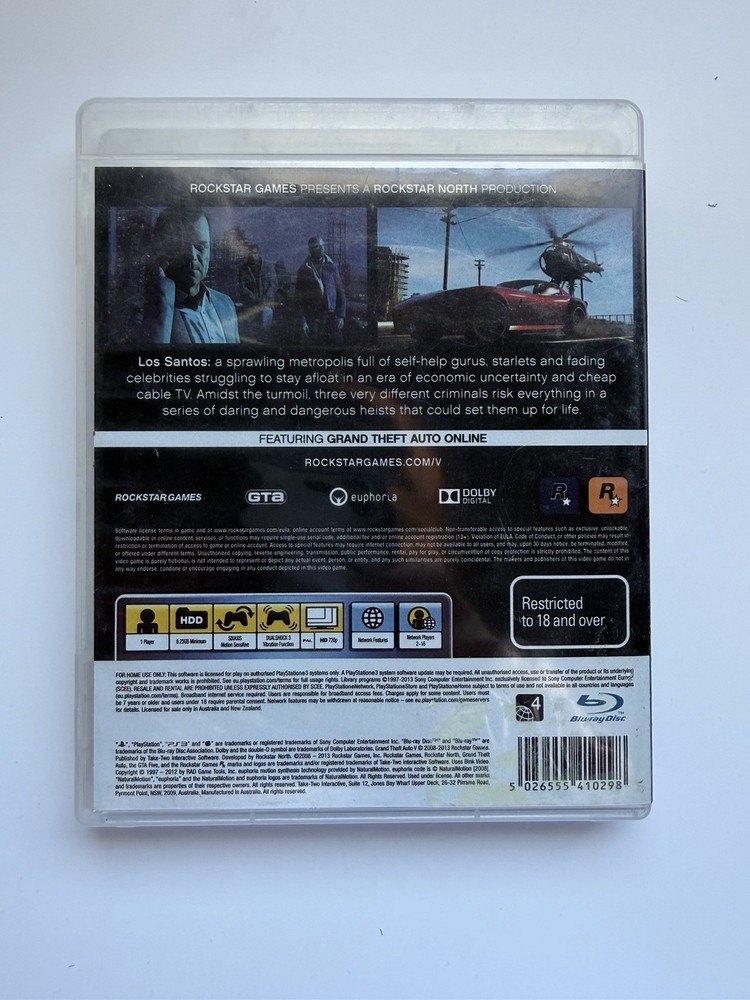Get ready for action-packed gameplay with Grand Theft Auto V for Sony PlayStation 3. Immerse yourself in the thrilling world of crime and adventure as you navigate through the streets of Los Santos. Released in 2013 by Sony, this R 18+ rated game is part of the popular Grand Theft Auto series, delivering an engaging experience for fans of action and adventure genres. Region Free and featuring fast postage with tracking, this game is a must-have for any gamer looking to dive into the world of GTA5 on their PS3 console.