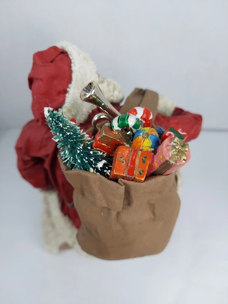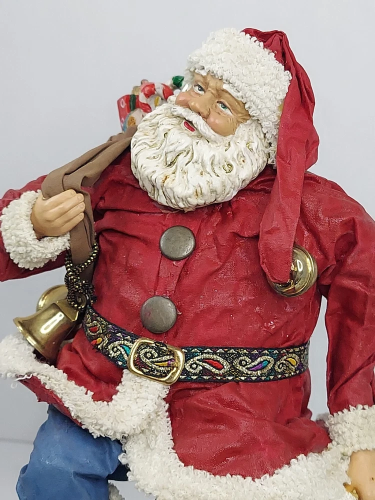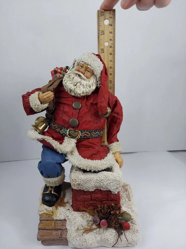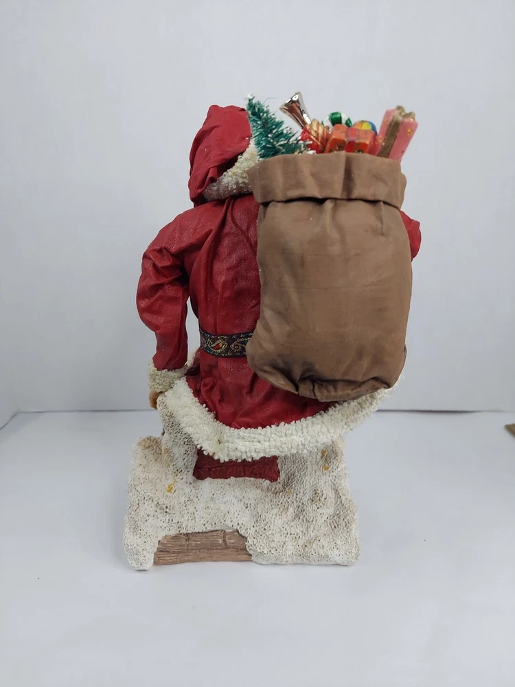 Grandeur Noel Christmas Fabric Mache Santa Claus 10” W Gifts Bells Down Chimney Please see the pictures for measurements and condition.