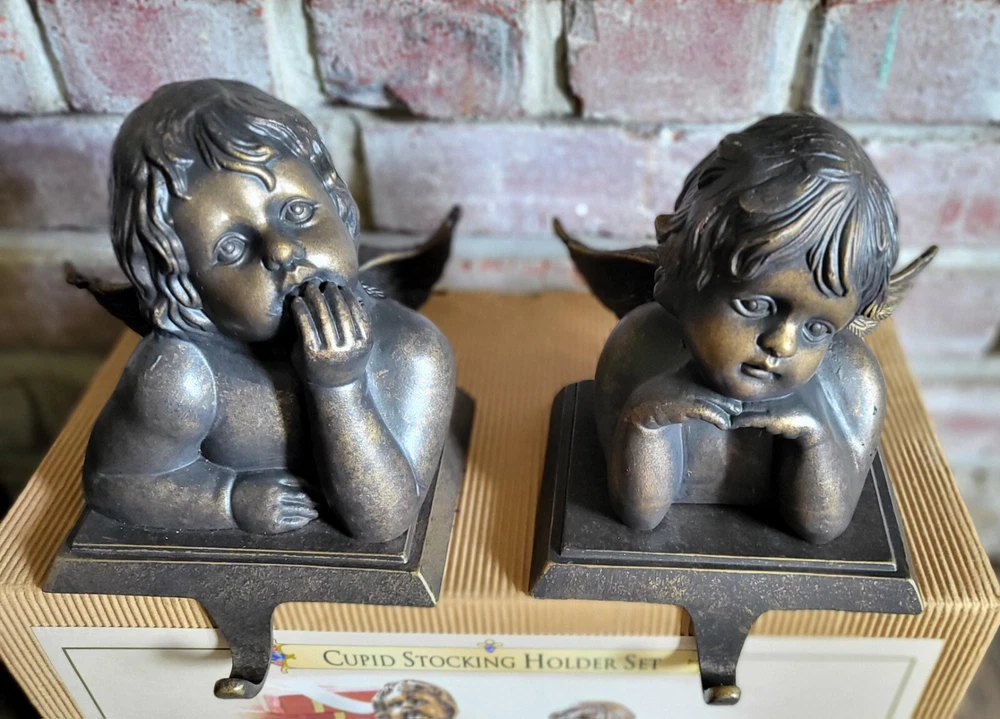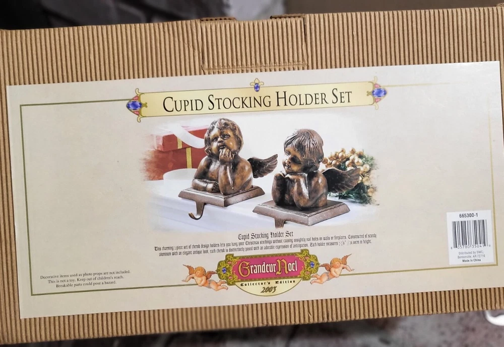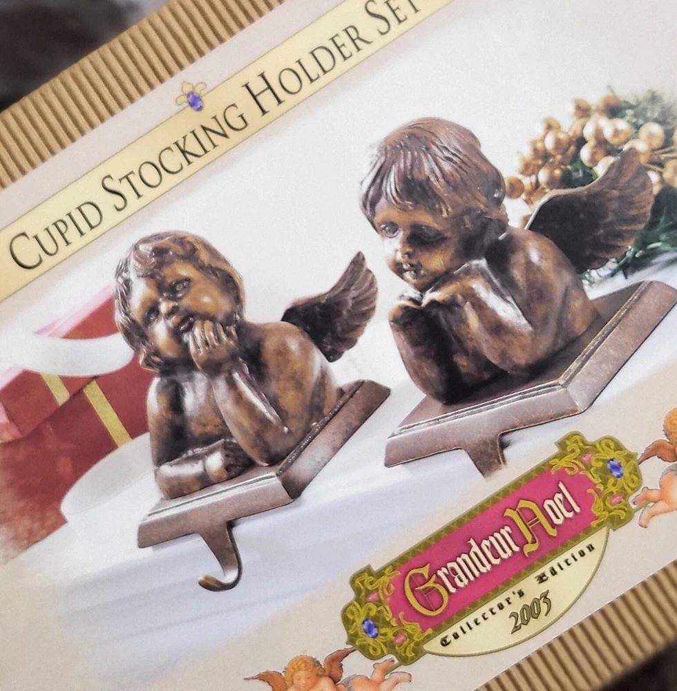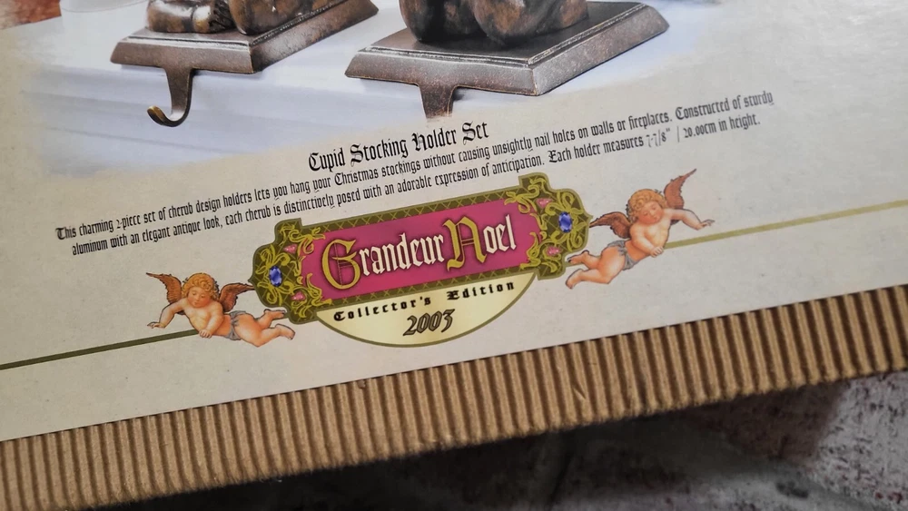 Grandeur Noel Cupid Stocking Holder 2pc Set Angel Cherub Heavy New In Box 2003