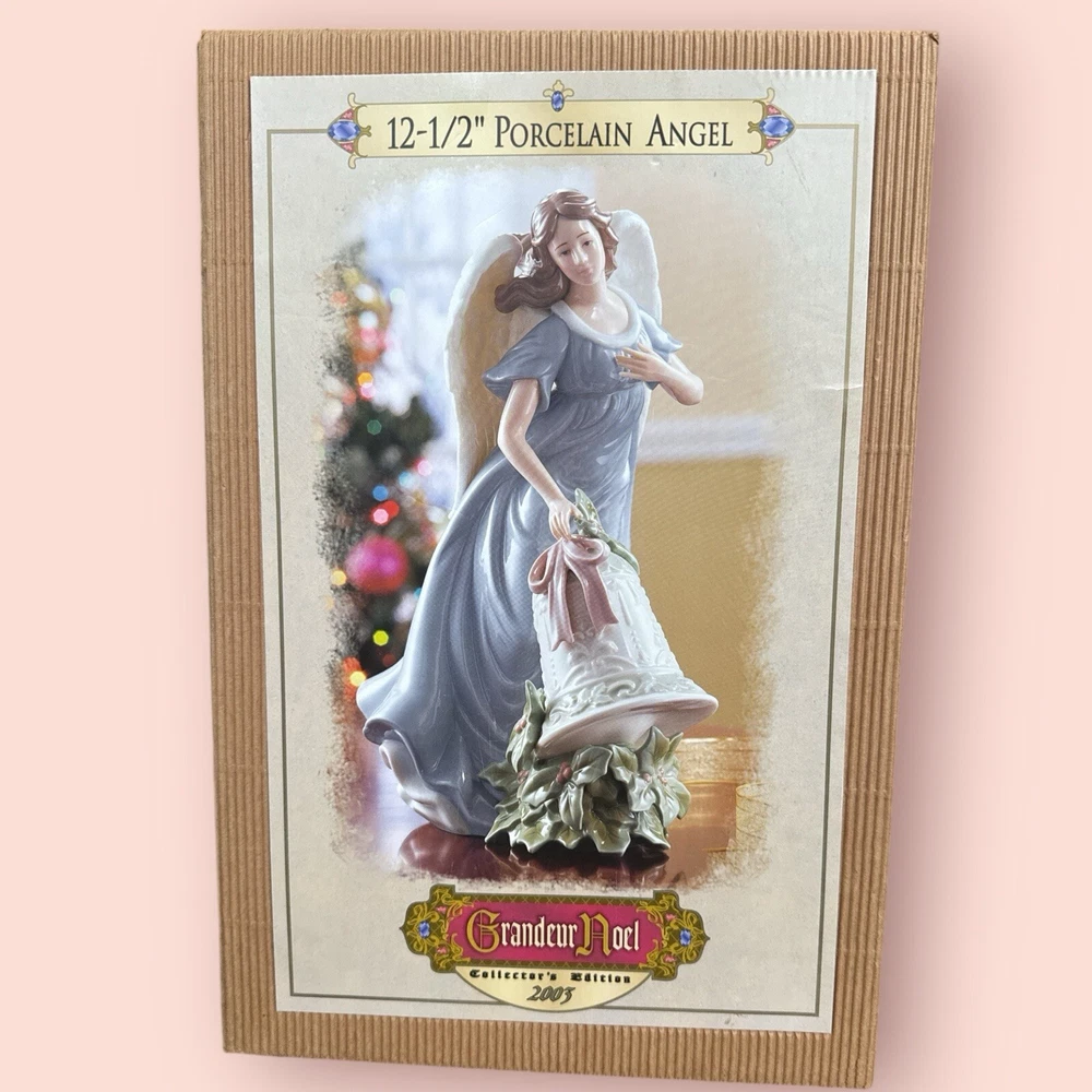 Grandeur Noel Hand Painted Porcelain Angel 12.5" Collector's Edition 2003 This exquisite porcelain figurine from Grandeur Noel is a must-have for collectors of angel figurines. The beautifully hand-painted angel stands at 12.5 inches tall, making it a stunning centerpiece for any room. This collector's edition item was manufactured in 2003 and comes new in the box, ready to be added to your collection.The attention to detail on this figurine is impeccable, from the delicate facial features to the intricately designed wings. Made from high-quality porcelain, this piece is sure to become a treasured part of your collection. Add this angel to your cart today and admire its beauty for years to come.
