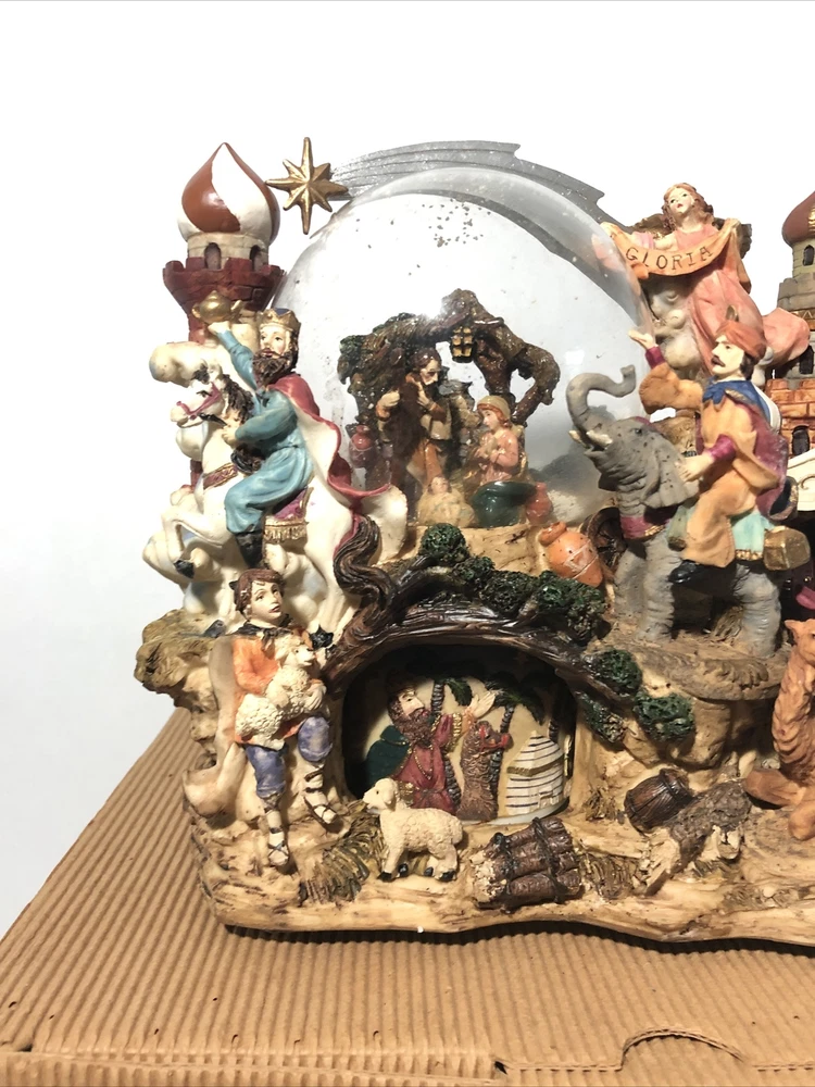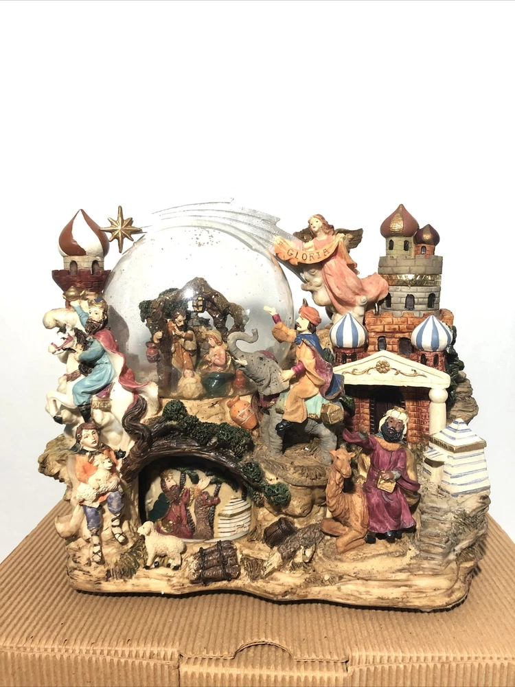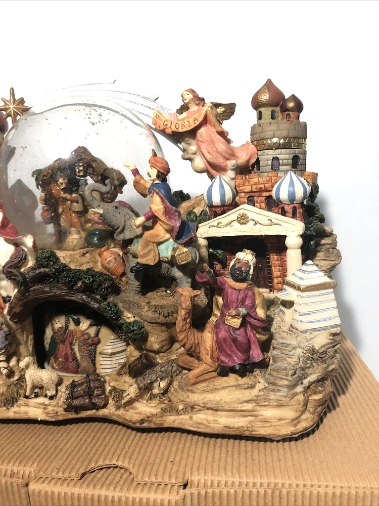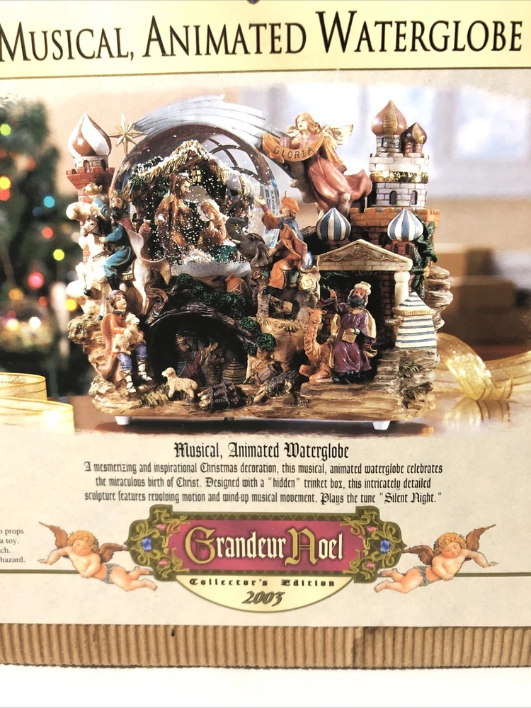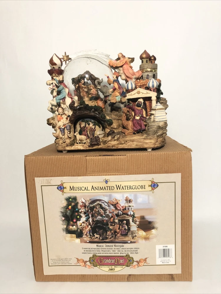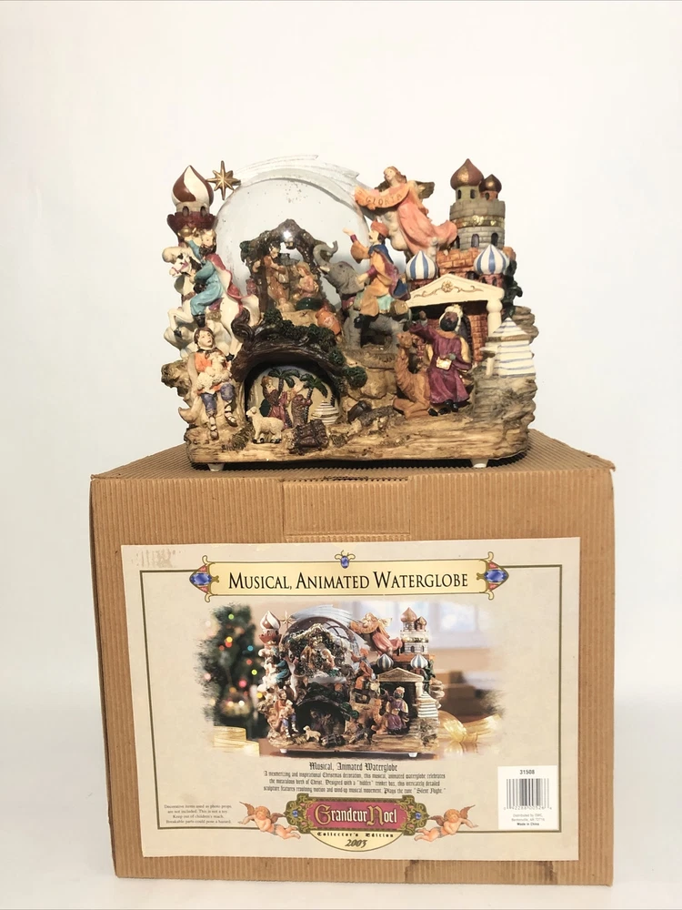 Piece is in great condition- water has been emptied Grandeur Noel Collector's 2003 Musical Animated Waterglobe Christmas Nativity. SKU 9200