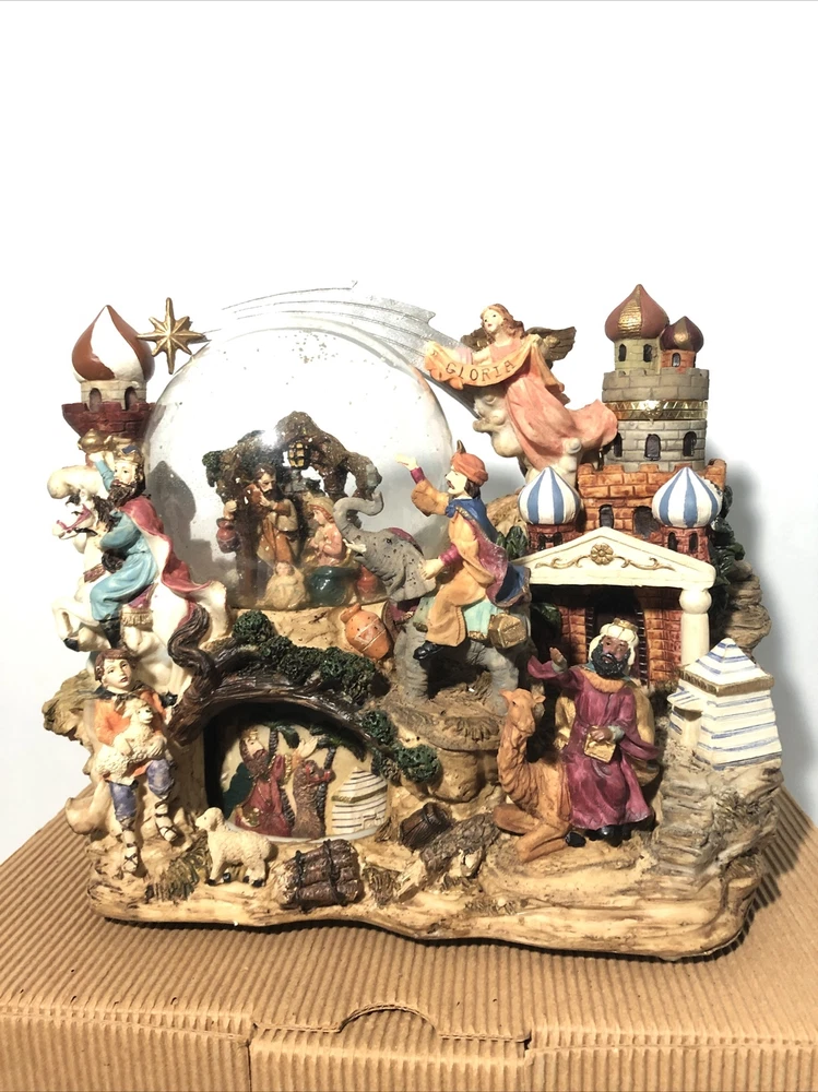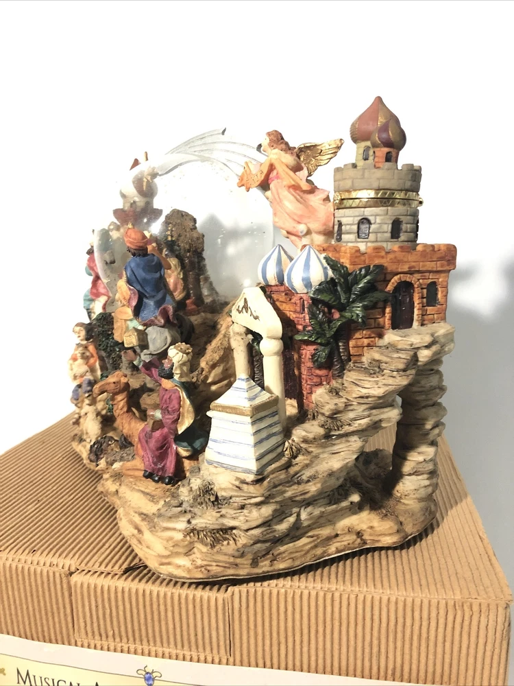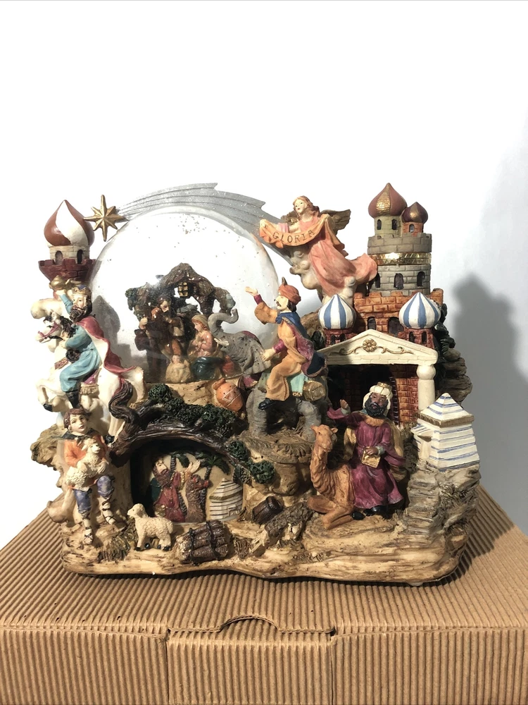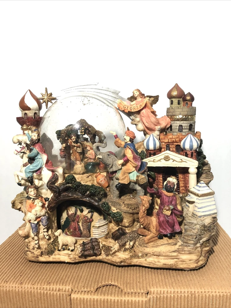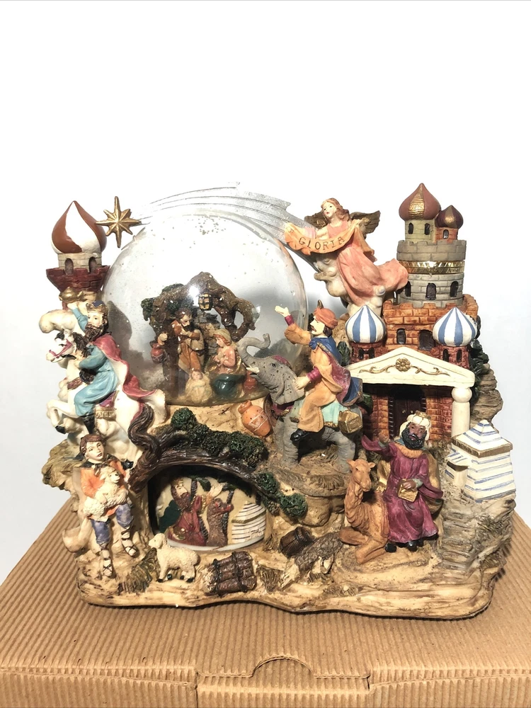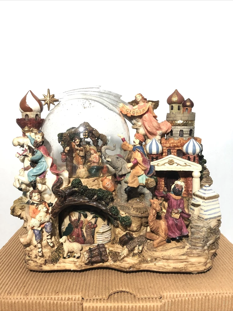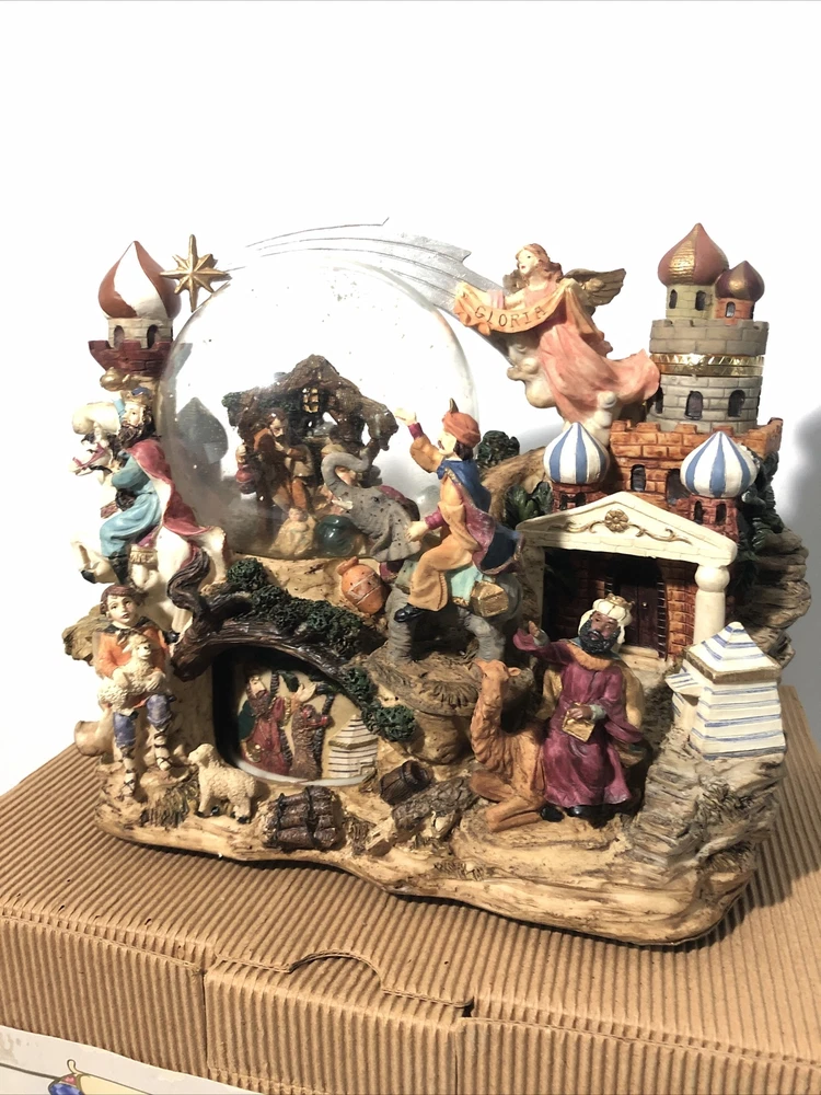 Piece is in great condition- water has been emptied Grandeur Noel Collector's 2003 Musical Animated Waterglobe Christmas Nativity. SKU 9200